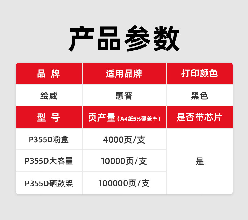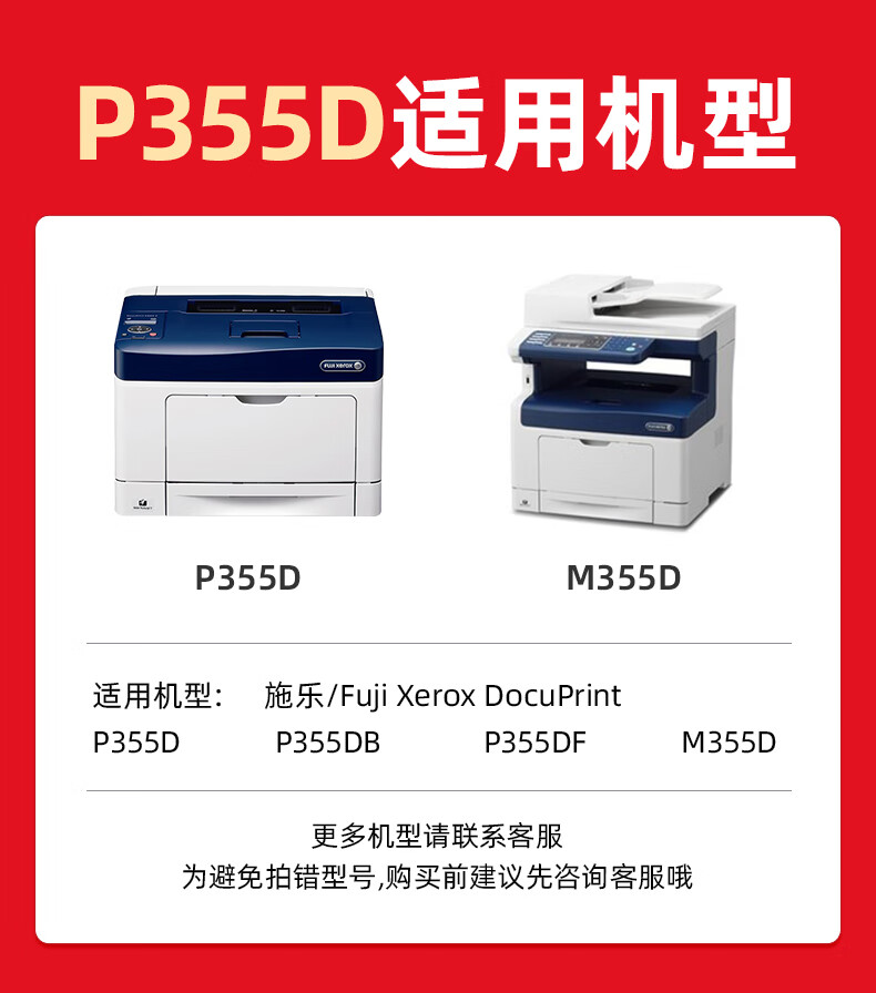 绘威P355D粉盒带芯片 适用富士施乐Fuji Xerox P355db P365d P368d M355df打印机墨粉盒 墨粉筒带载体(4000页/支) 黑色