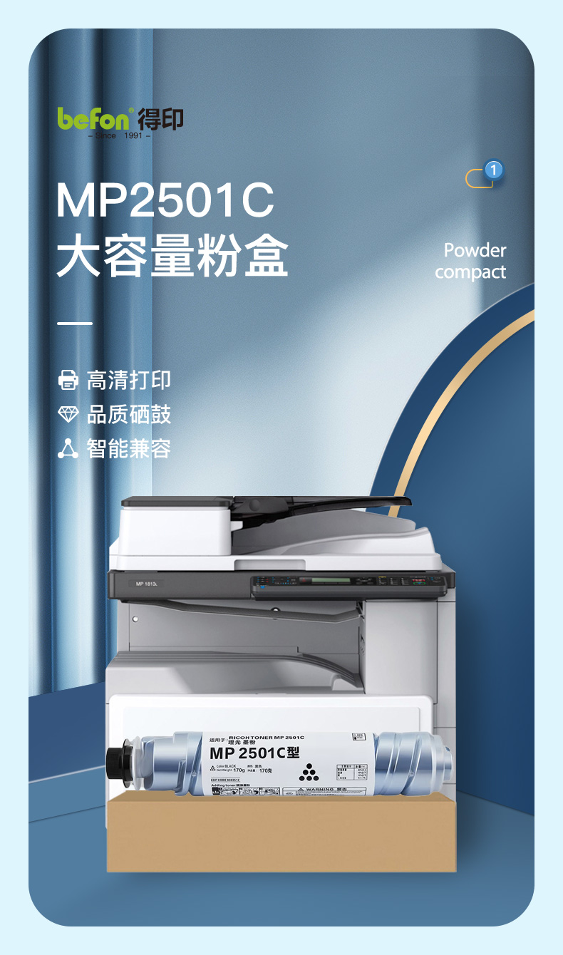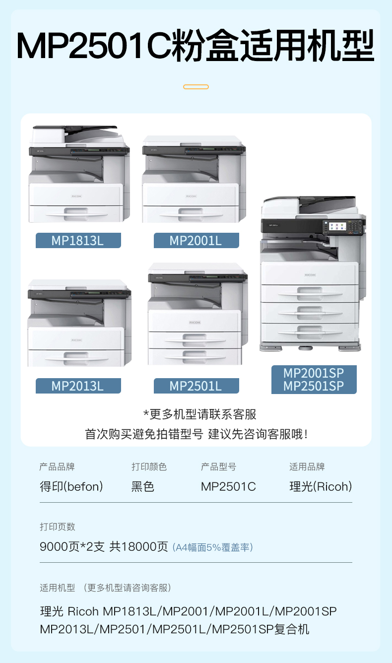 得印(befon) MP2501C 6000页*2 适用理光MP1813L 墨粉盒 2.00 只/组 (计价单位:组) 黑色