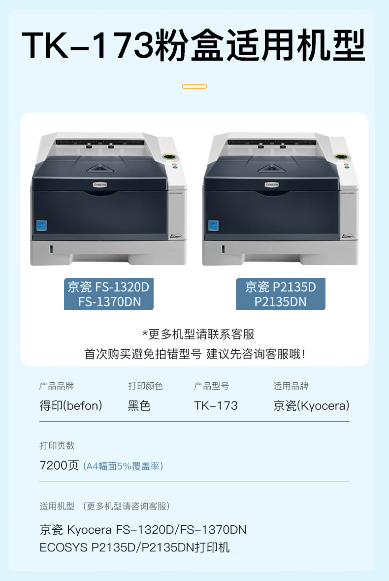 得印(befon) TK-173 7200页 适用京瓷FS-1320d 墨粉盒 1.00 只/支 (计价单位:支) 黑色