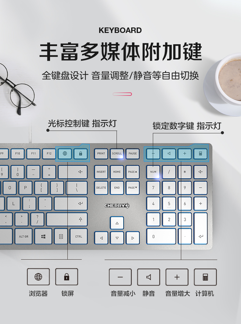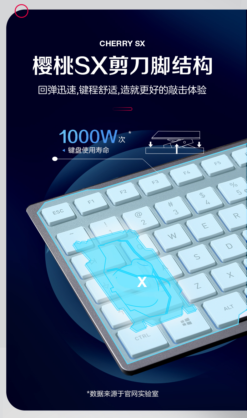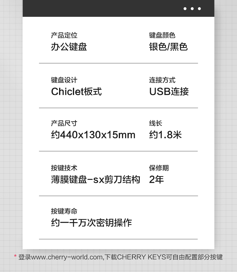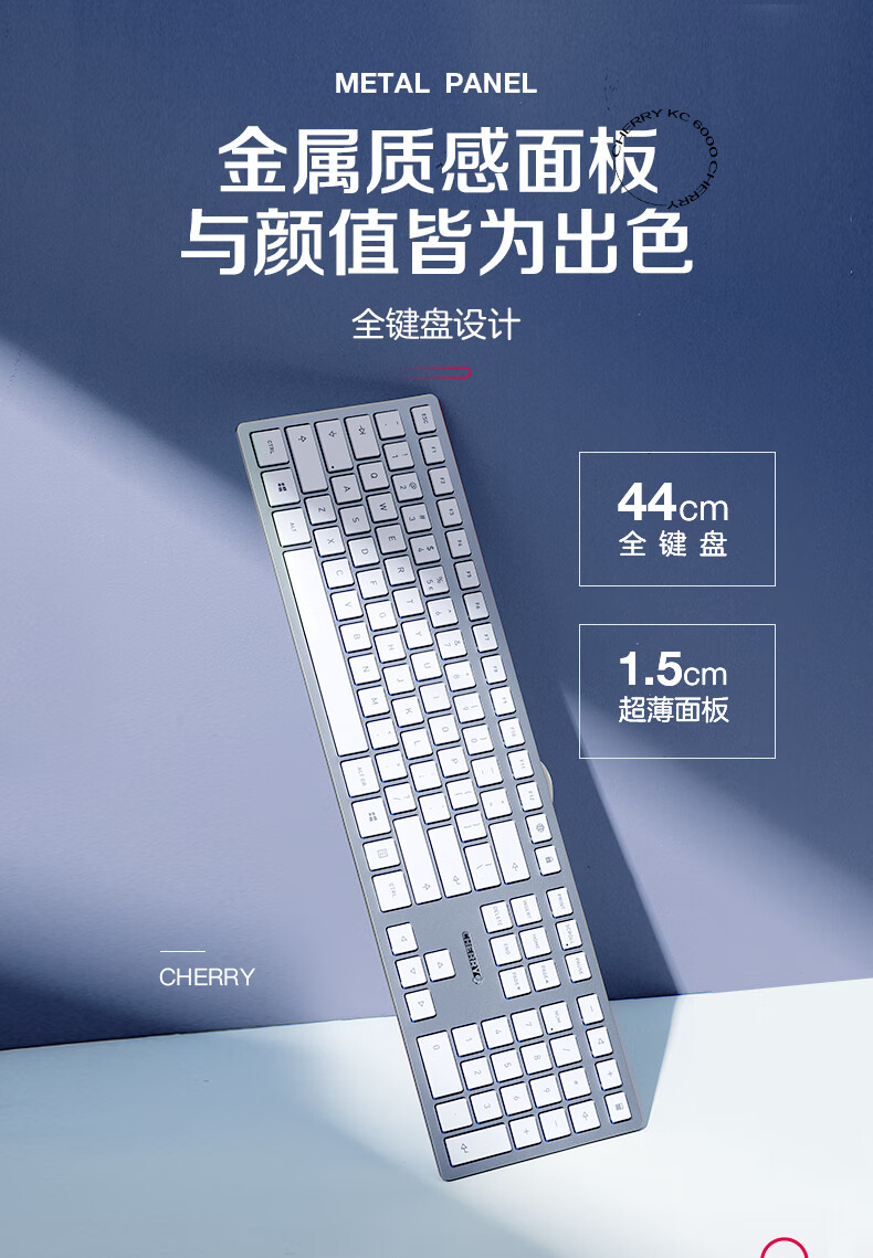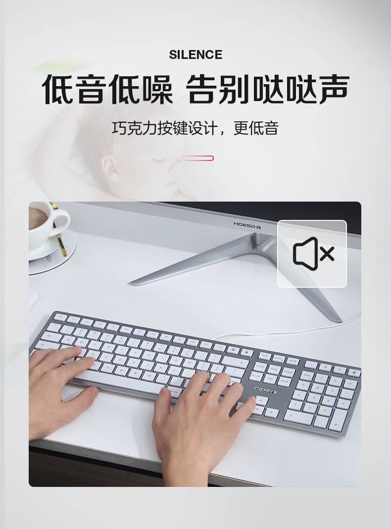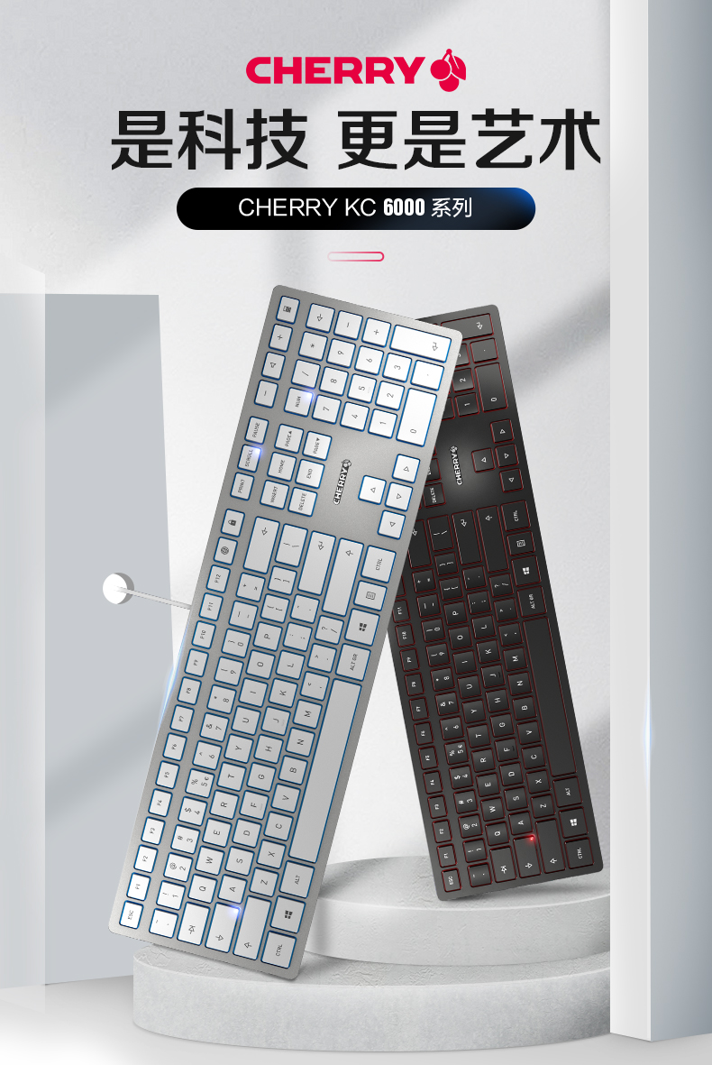 樱桃(CHERRY)KC6000有线键盘轻音超薄SX剪刀脚办公商务家用键盘 黑色