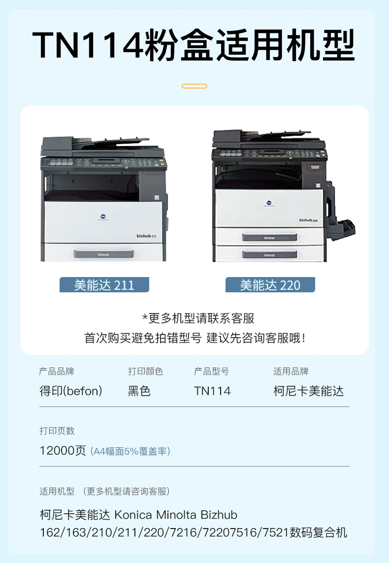 得印(befon) BF-TN114 12000页 适用柯尼卡美能达TN114 墨粉盒 1.00 只/支 (计价单位:支) 黑色