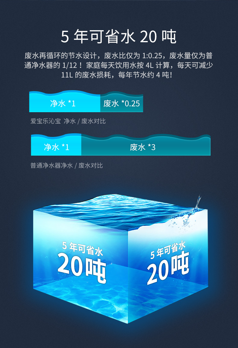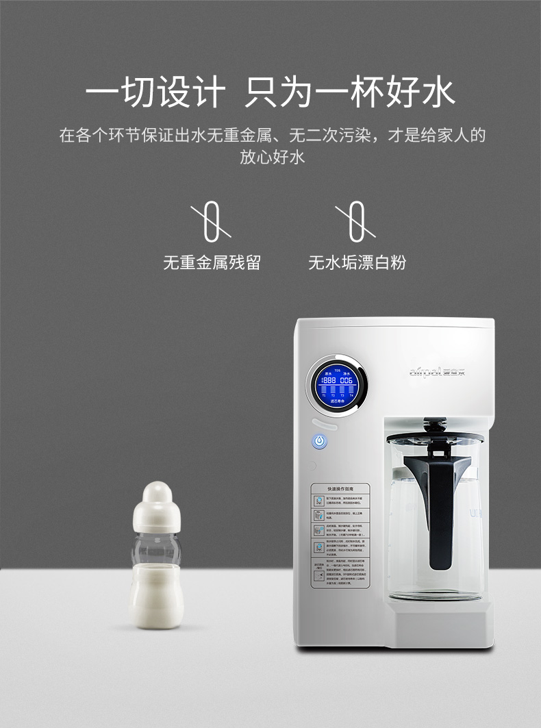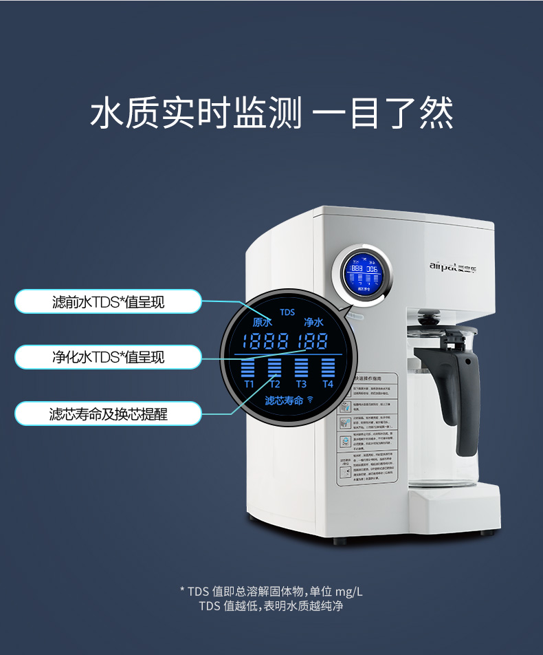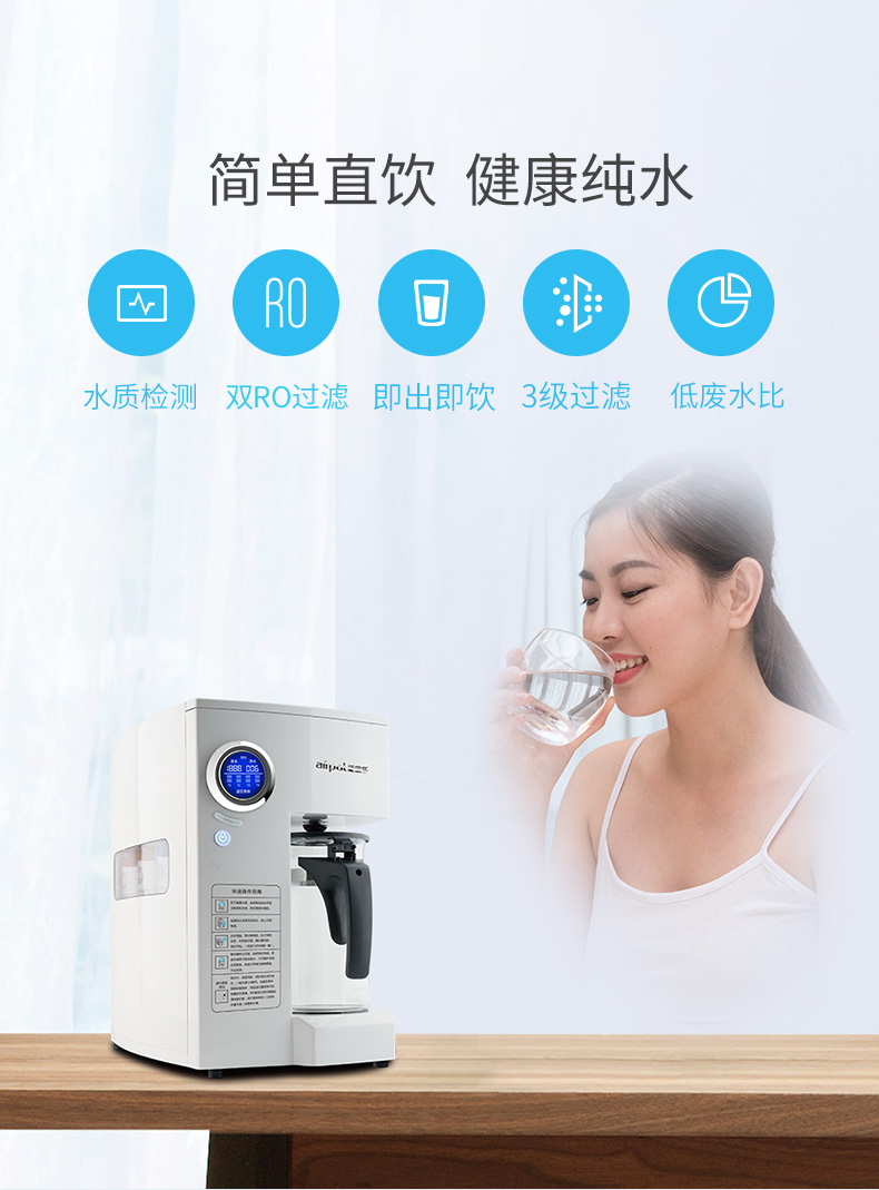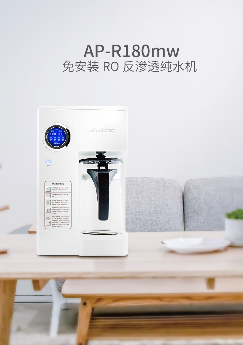 爱宝乐(airpal) 免安装净水器家用 RO反渗透 智能直饮纯水机R180 白色