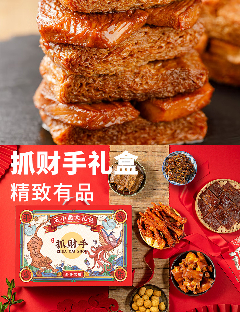 王小卤虎皮凤爪卤味礼盒大礼包C款1265g 红色