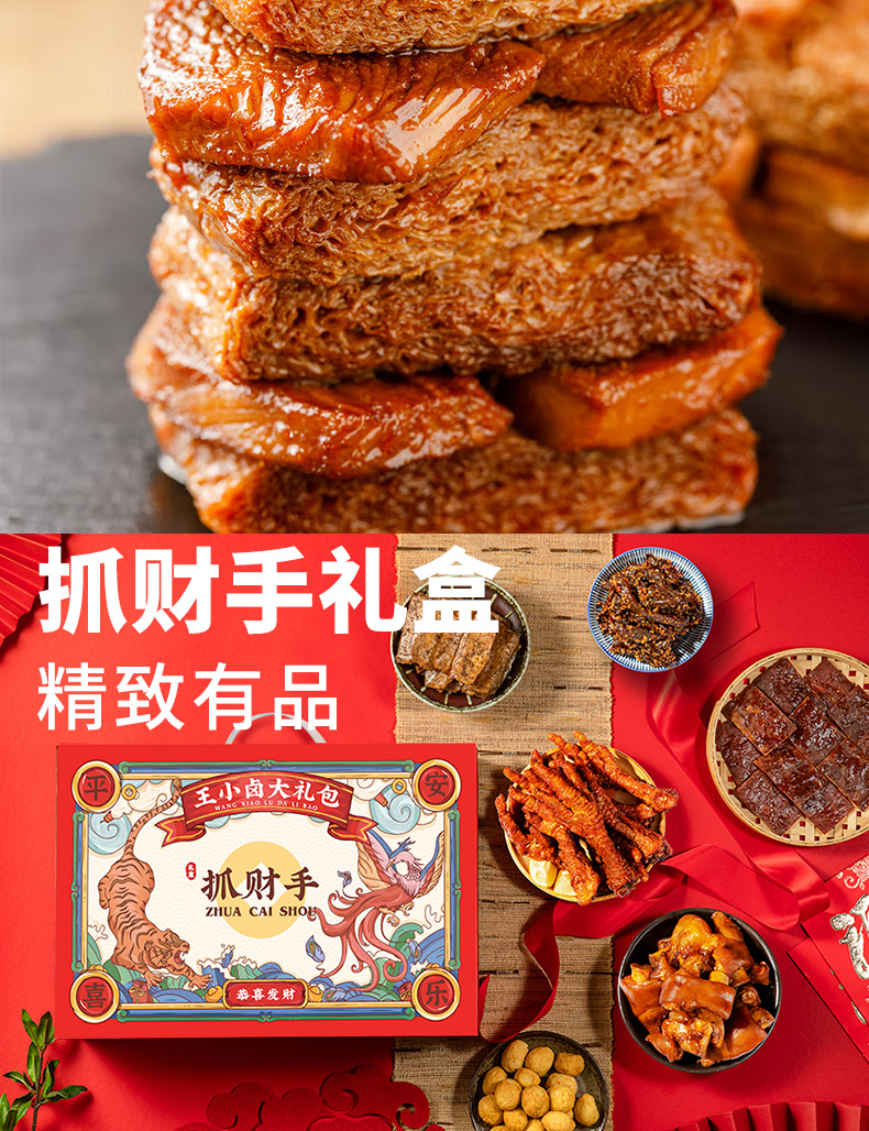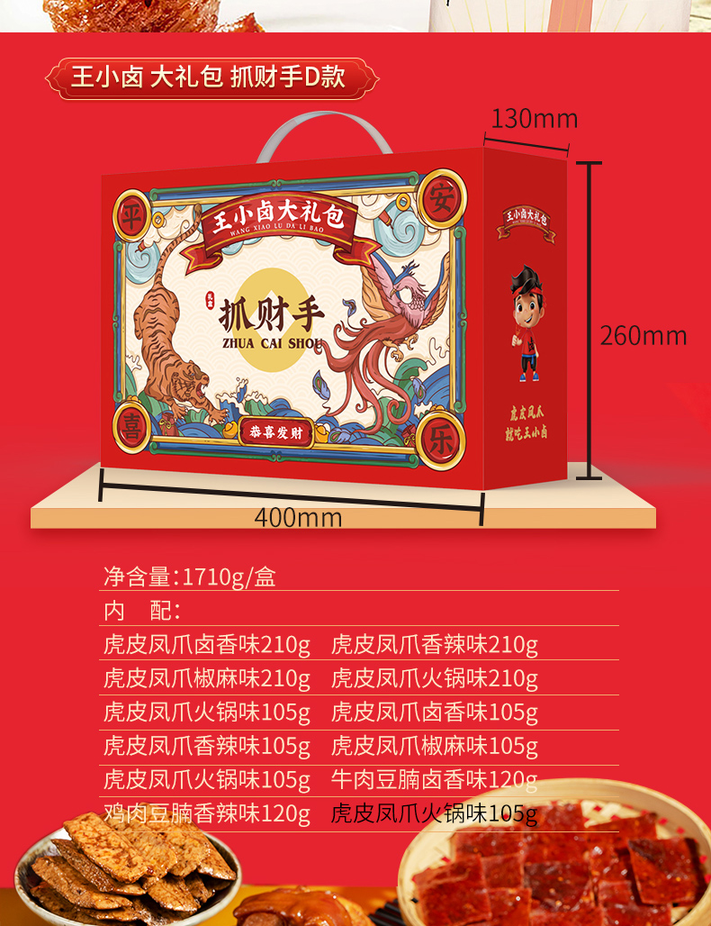 王小卤虎皮凤爪卤味礼盒大礼包D款1710g 红色