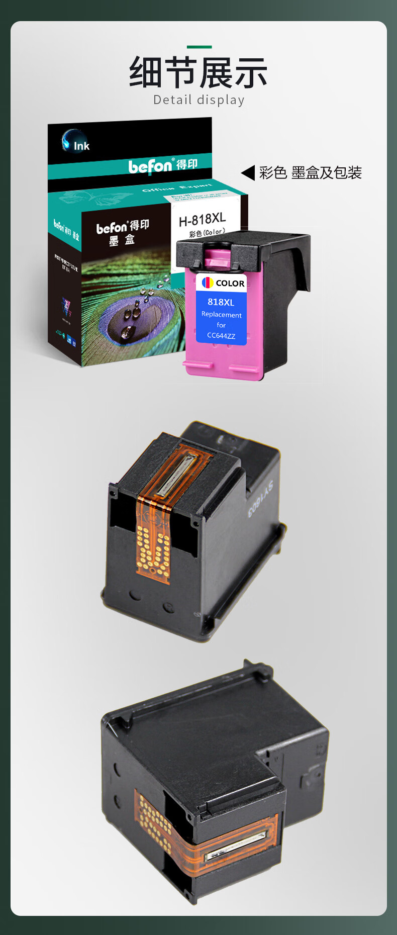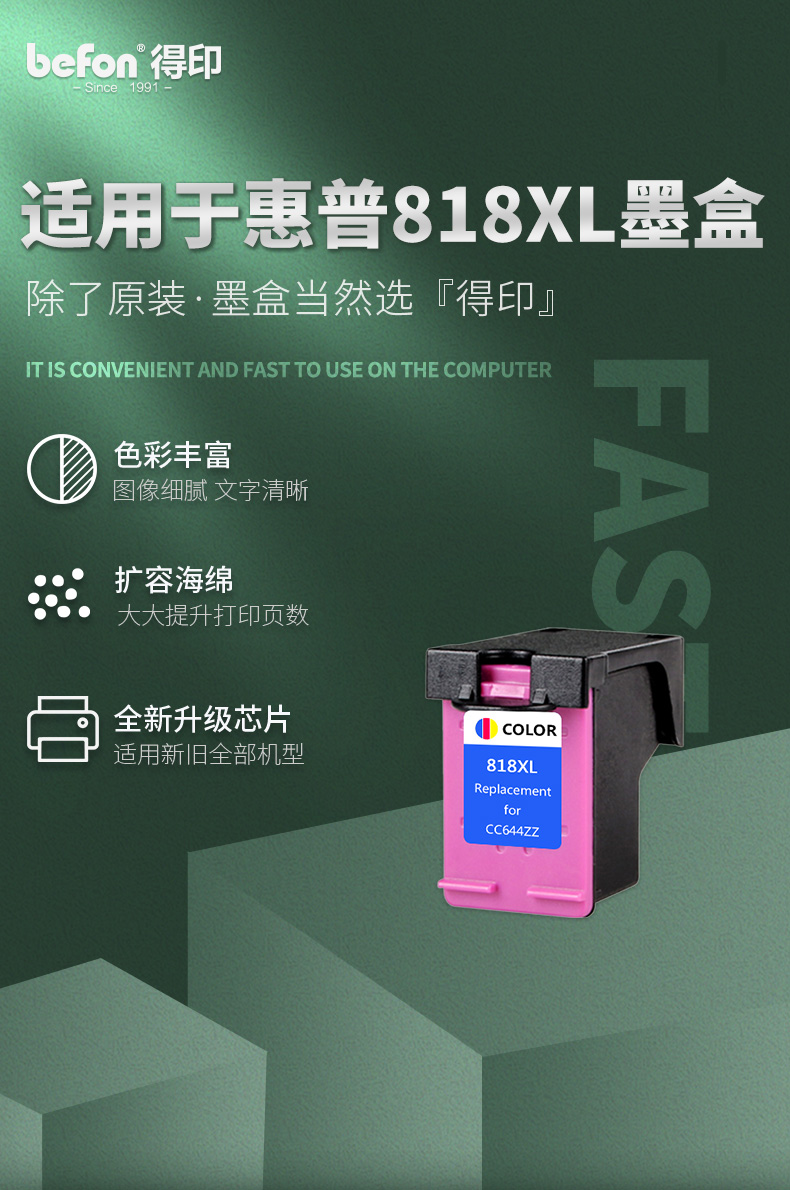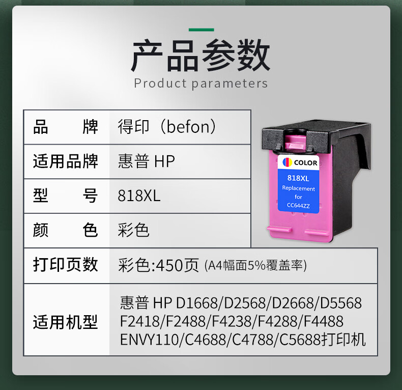 得印(befon) 818C大容量 打印量450页 适用惠普HP818 F2418 F2488 4238 4288 4488 D1668 2668 5568 2568 墨盒 (计价单位:盒) 彩色