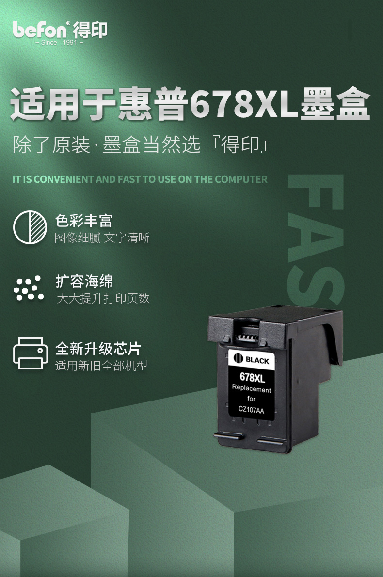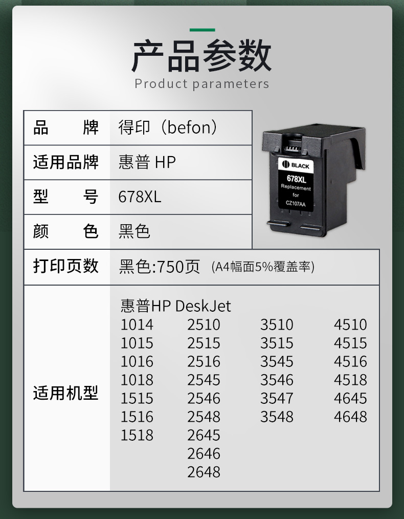 得印(befon) H-678大容量 打印量黑600页 适用HP Deskjet1018/2515/1518/4648/3515/2548/2648/3548/4518 墨盒 (计价单位:盒) 黑色