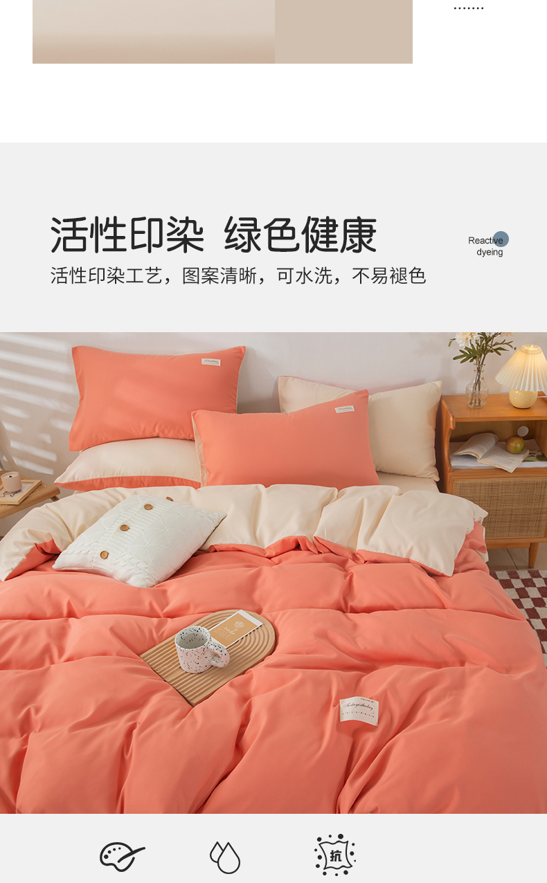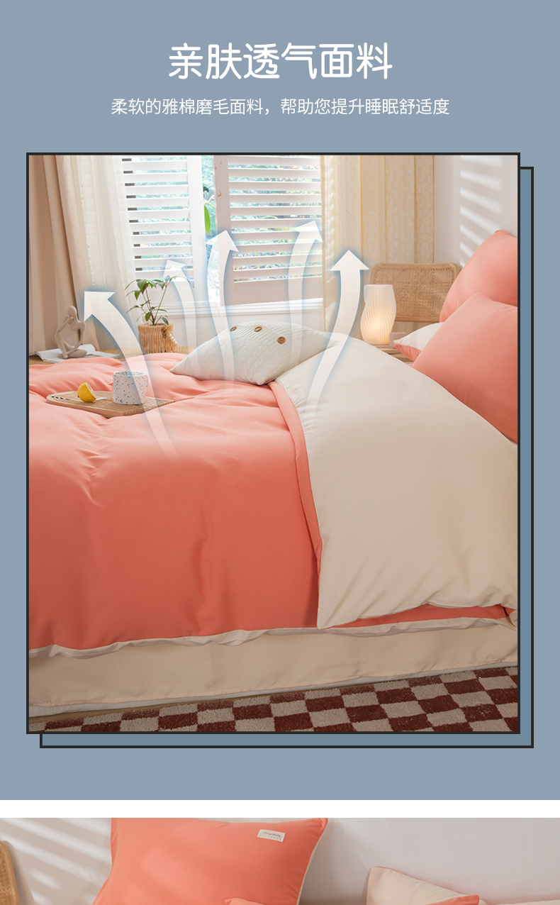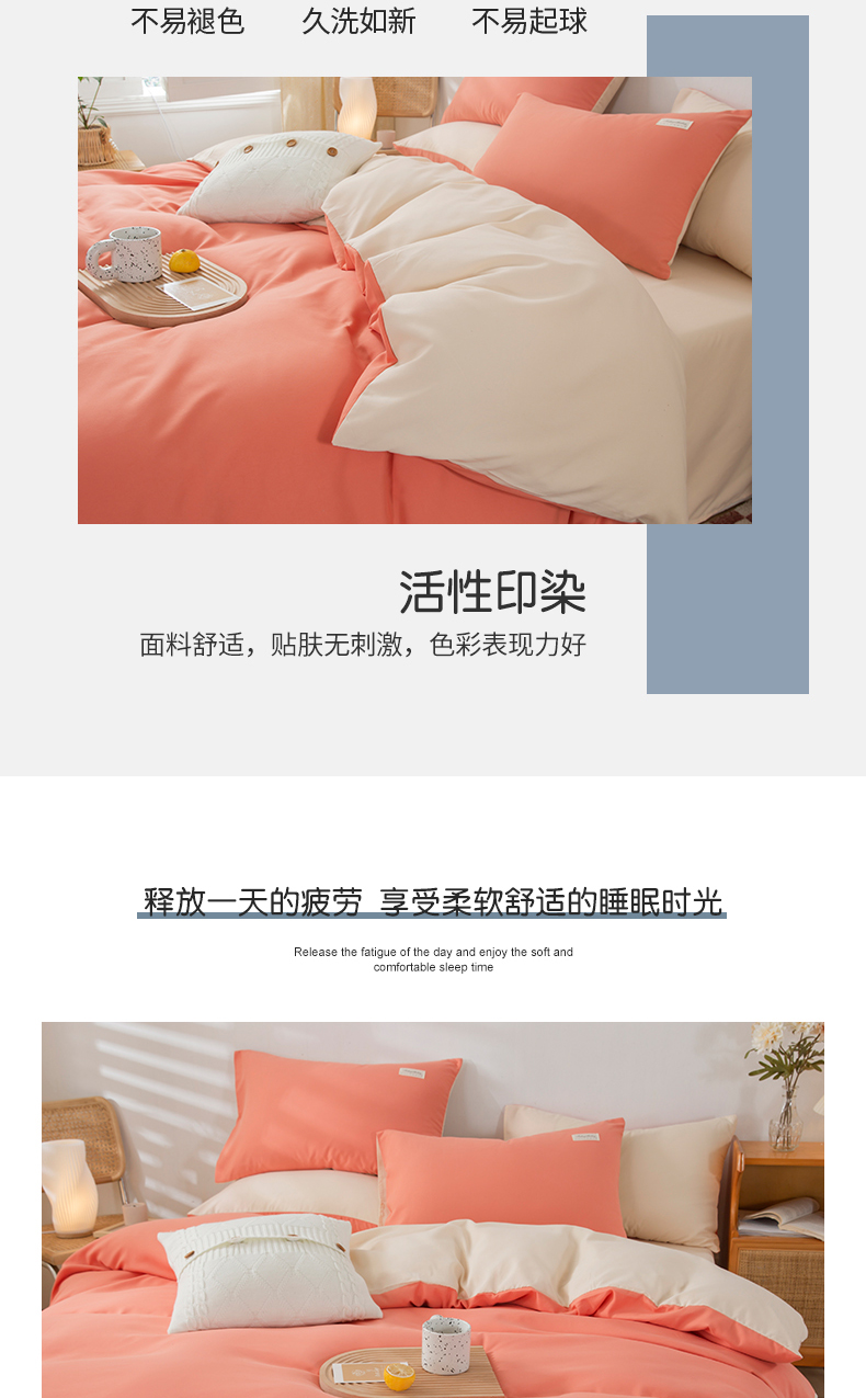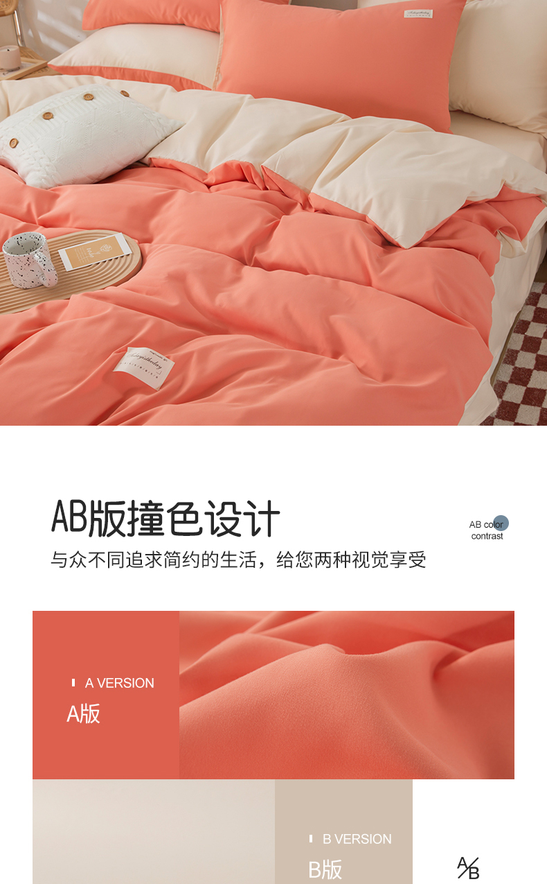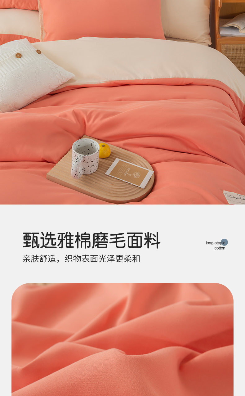 帛享家纺 双拼雅棉四件套 SKMX-1056(单位:套) 海棠橙+奶白