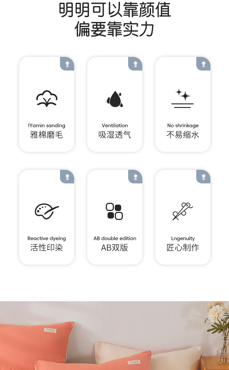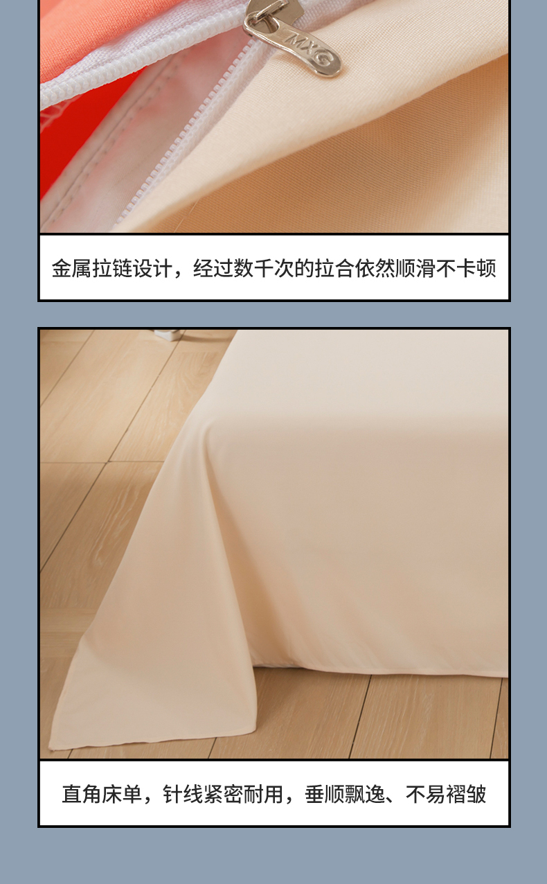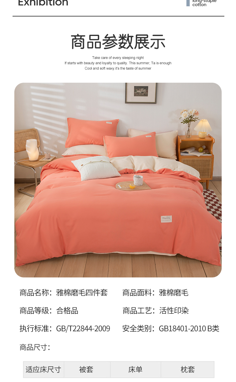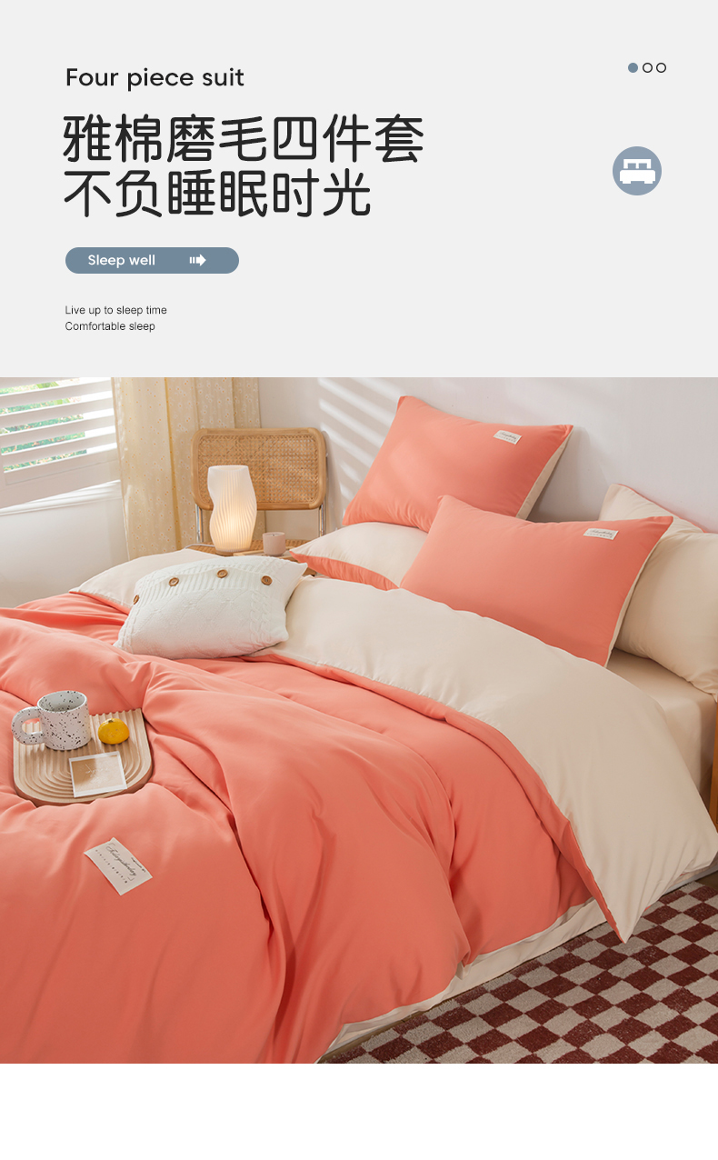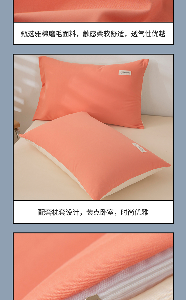 帛享家纺 双拼雅棉四件套 SKMX-1056(单位:套) 海棠橙+奶白