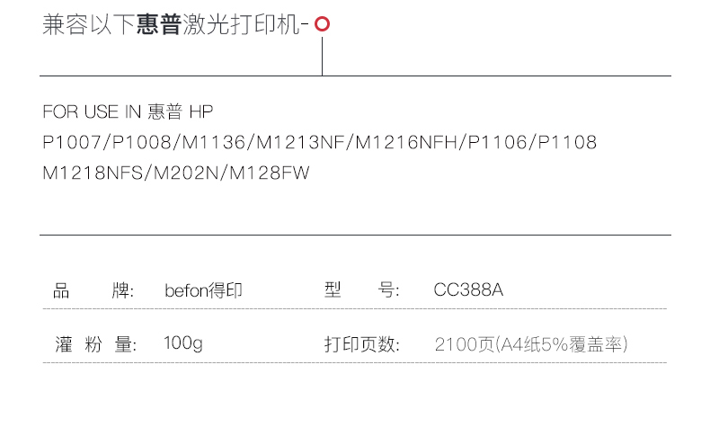 得印(befon) PLUS BF-CC388A 大容量 2100页 易加粉 硒鼓 (计价单位:只) 黑色