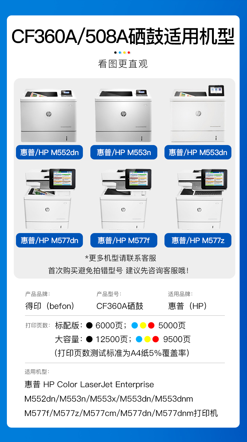 得印CF360X四色套装硒鼓大容量 508A 适用惠普HP M552dn粉盒墨盒 【店长力荐】CF360四色套41000页