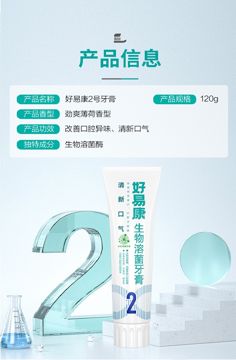 好易康 牙膏2号减轻口腔异味120g*1支(计价单位:支) 白色