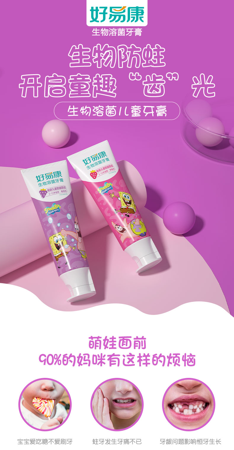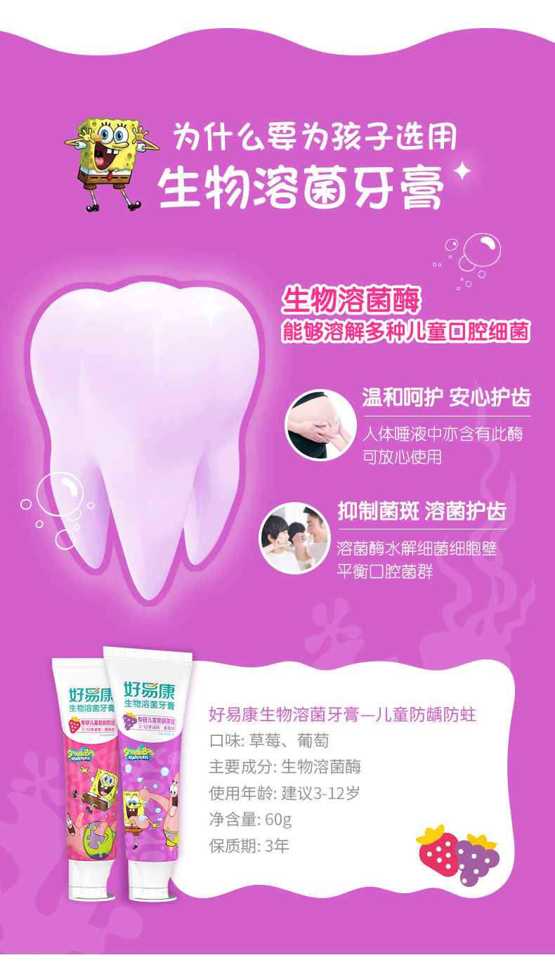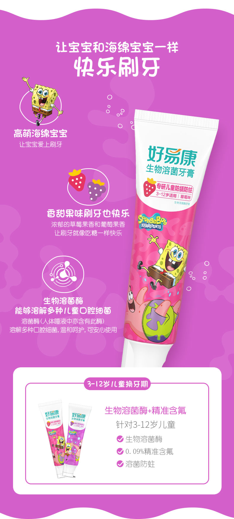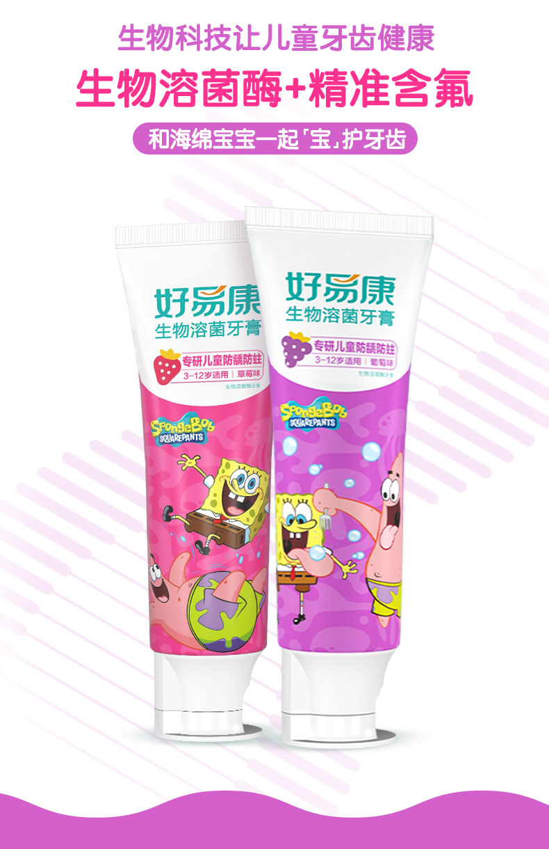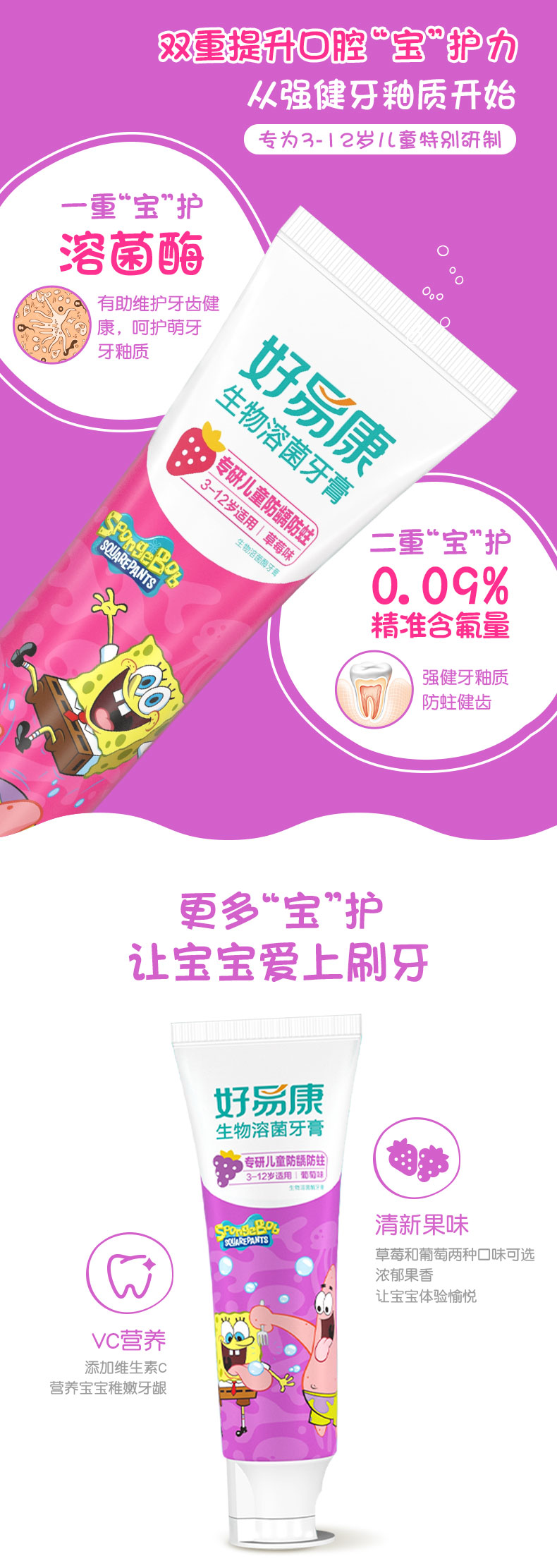 好易康 牙膏专研儿童防龋防蛀(草莓味)60g*2支(计价单位:套) 粉色