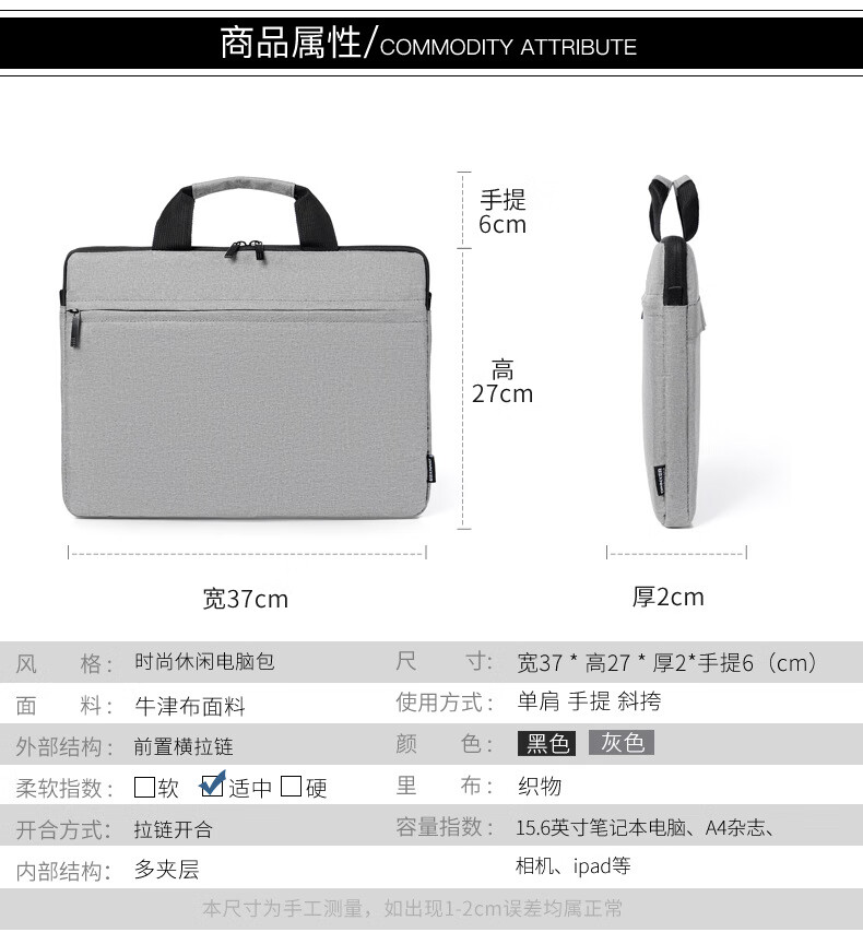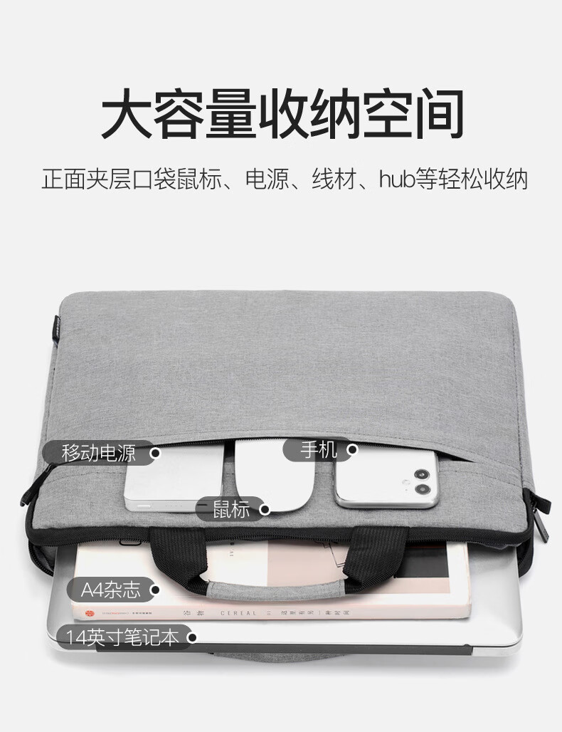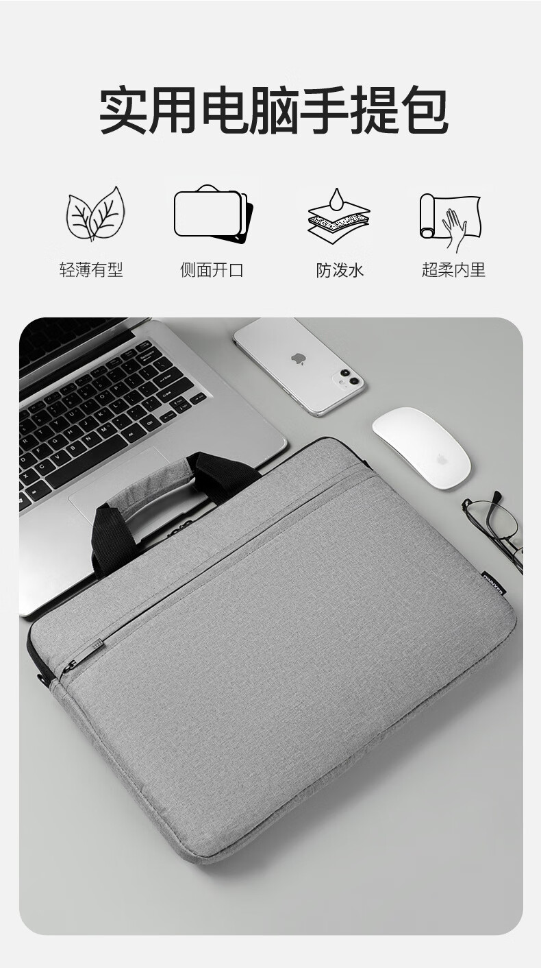 乐搏锐胜 笔记本电脑包14/15.6英寸手提包公文包出差商务旅行内胆包 灰RS-ST01单位:个 灰色