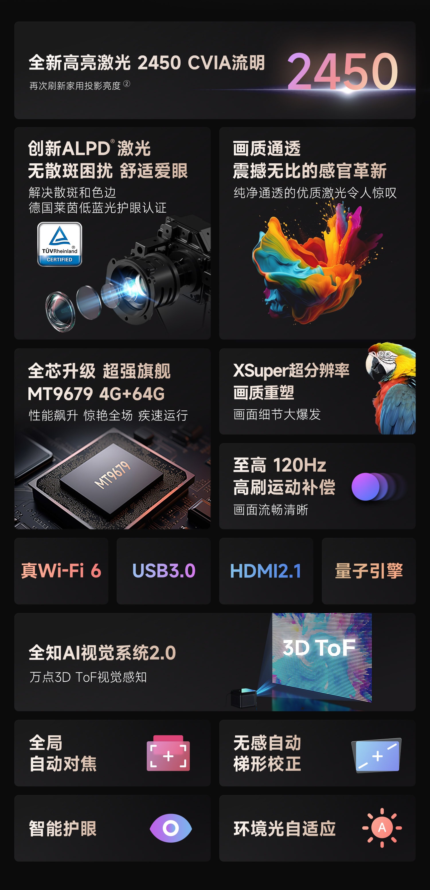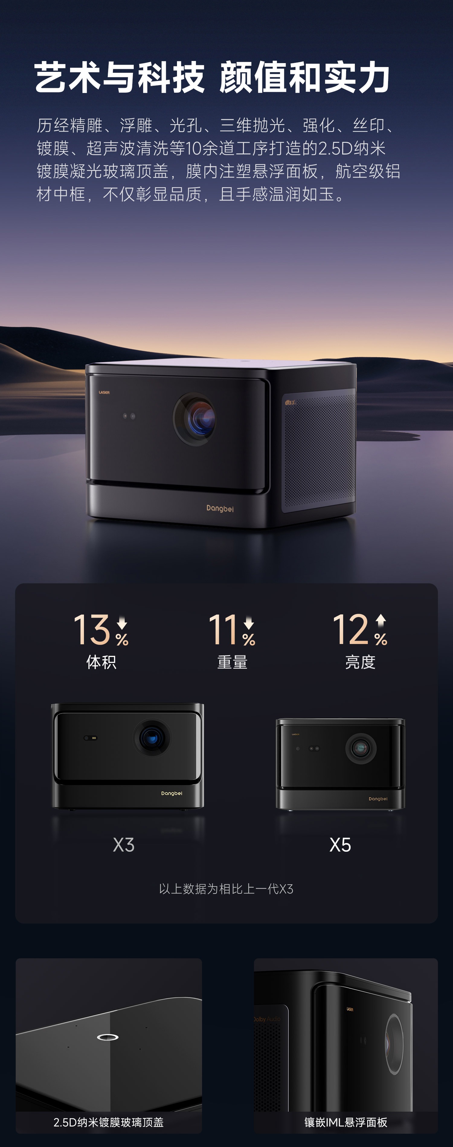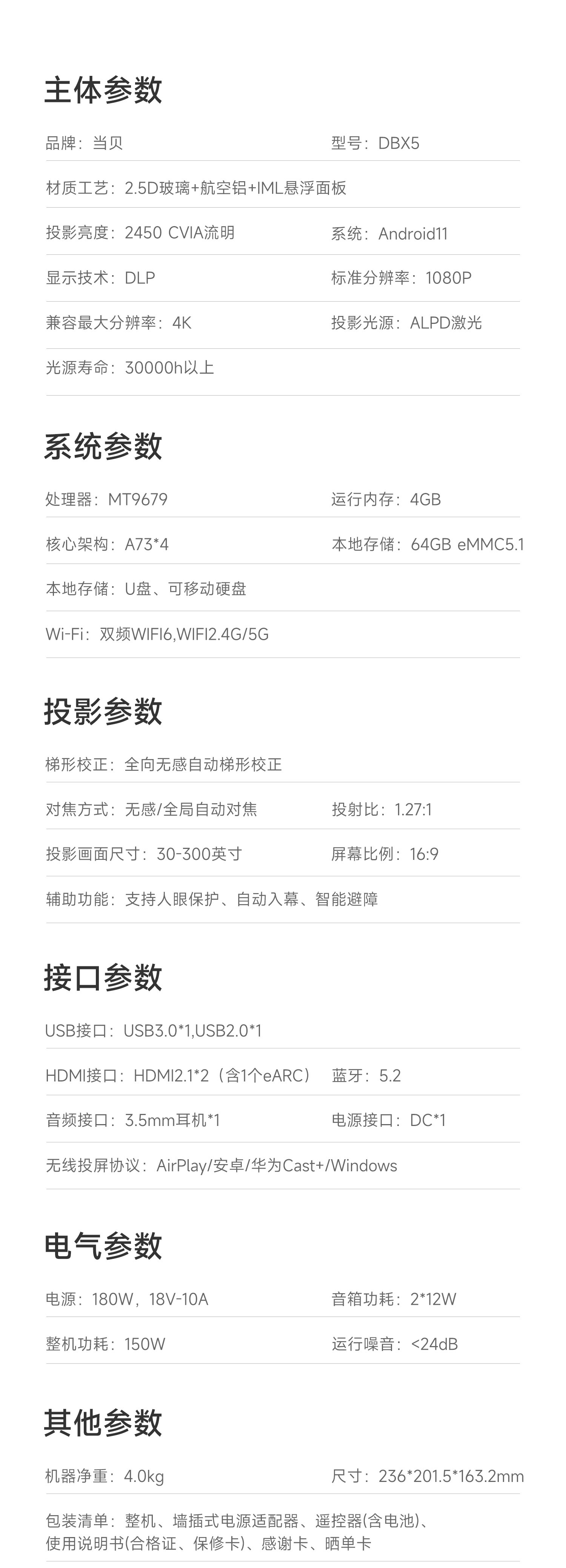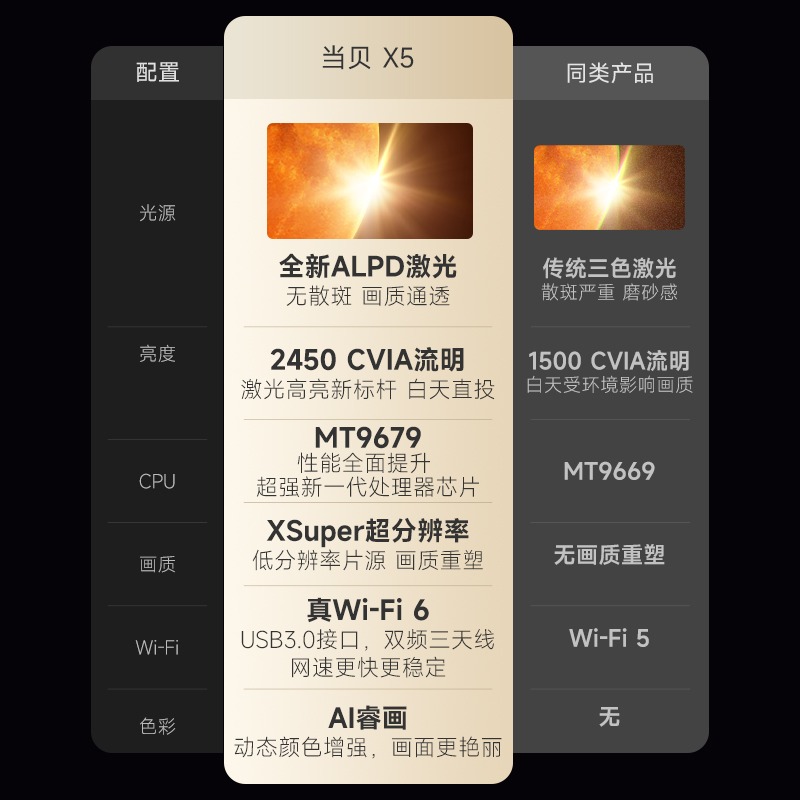 当贝 X5 激光投影仪 家用投影机 家庭影院(ALPD影院激光无散斑 2450 CVIA流明 MT9679全新大师芯片 4G+64G) 自然色
