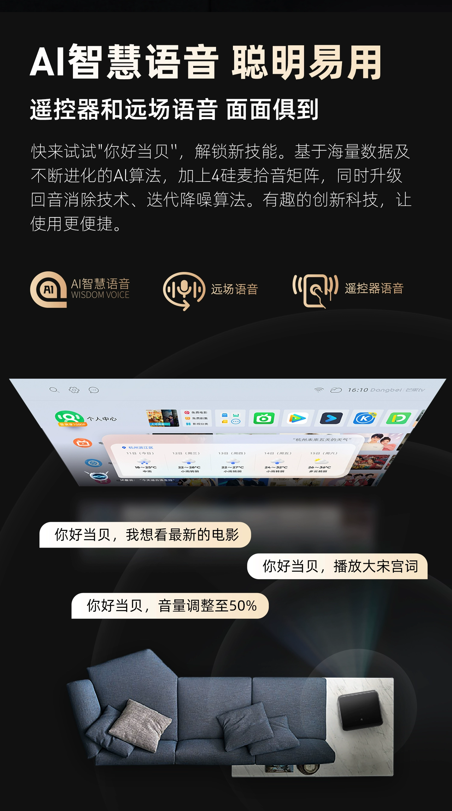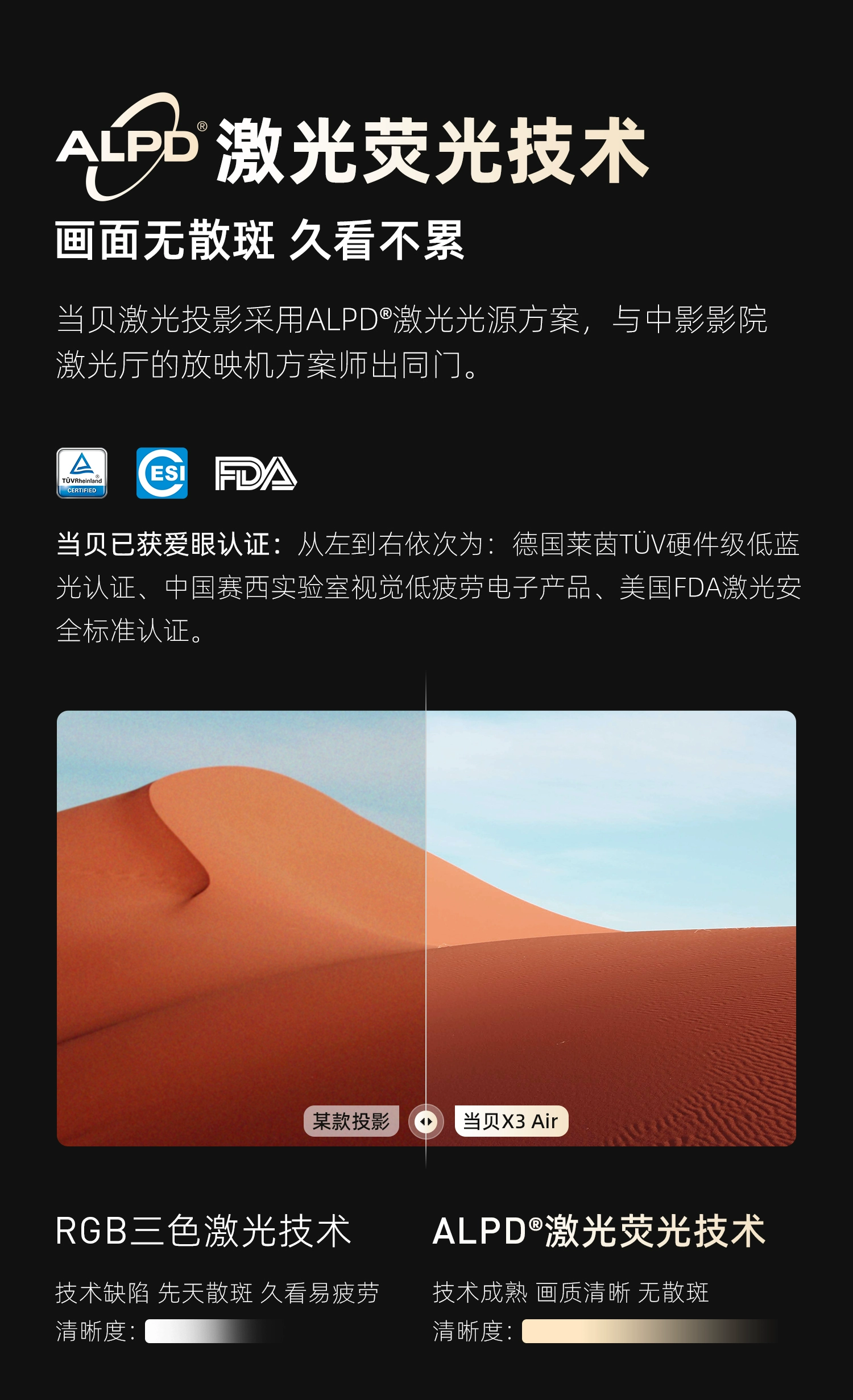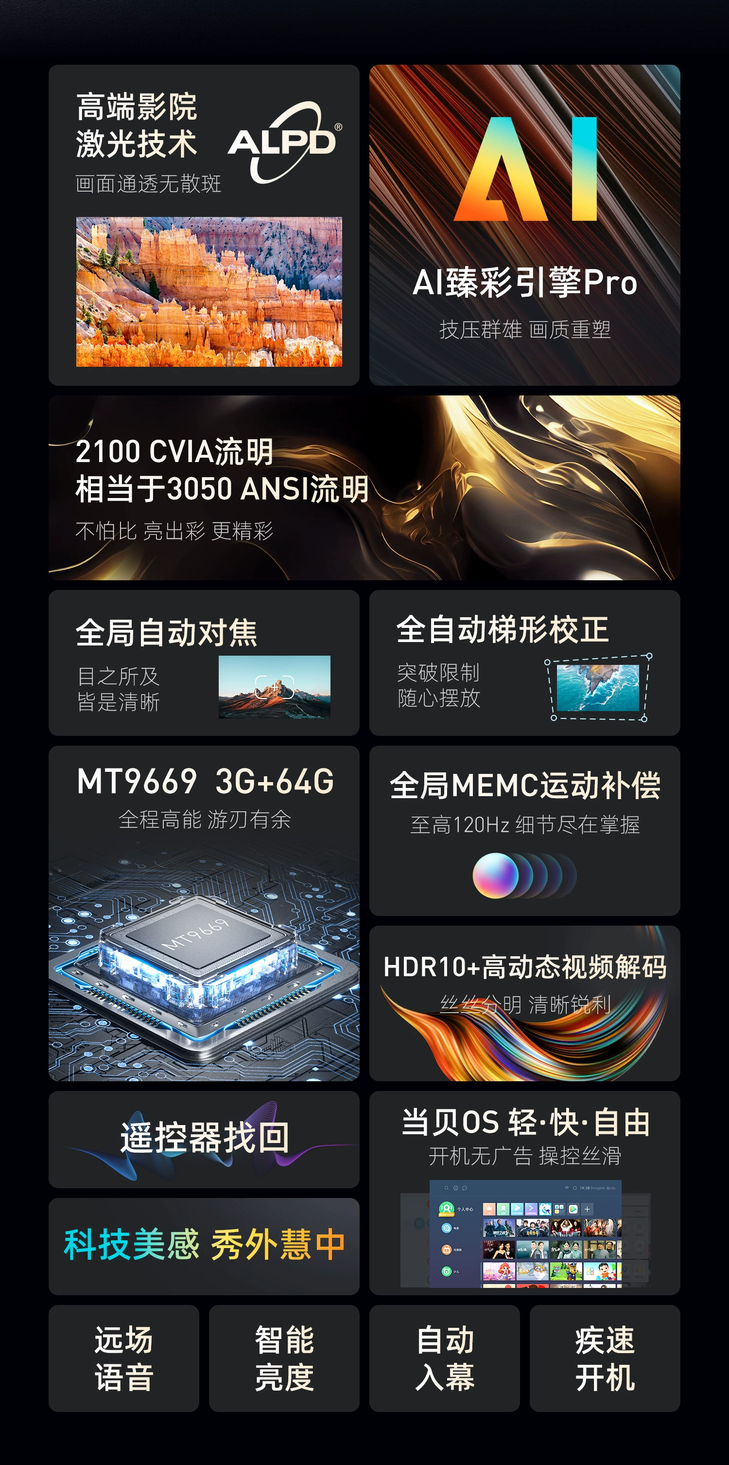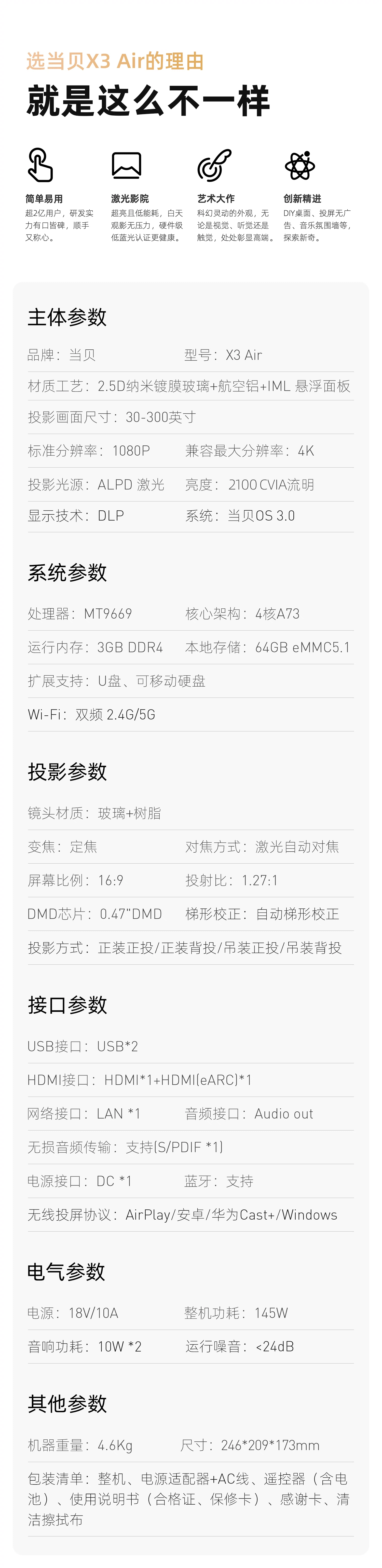 当贝 X3Air 激光投影仪 家用投影机 (ALPD影院激光无散斑 2100 CVIA流明 3+64G 万元级MT9669 自动对焦) 珍珠灰