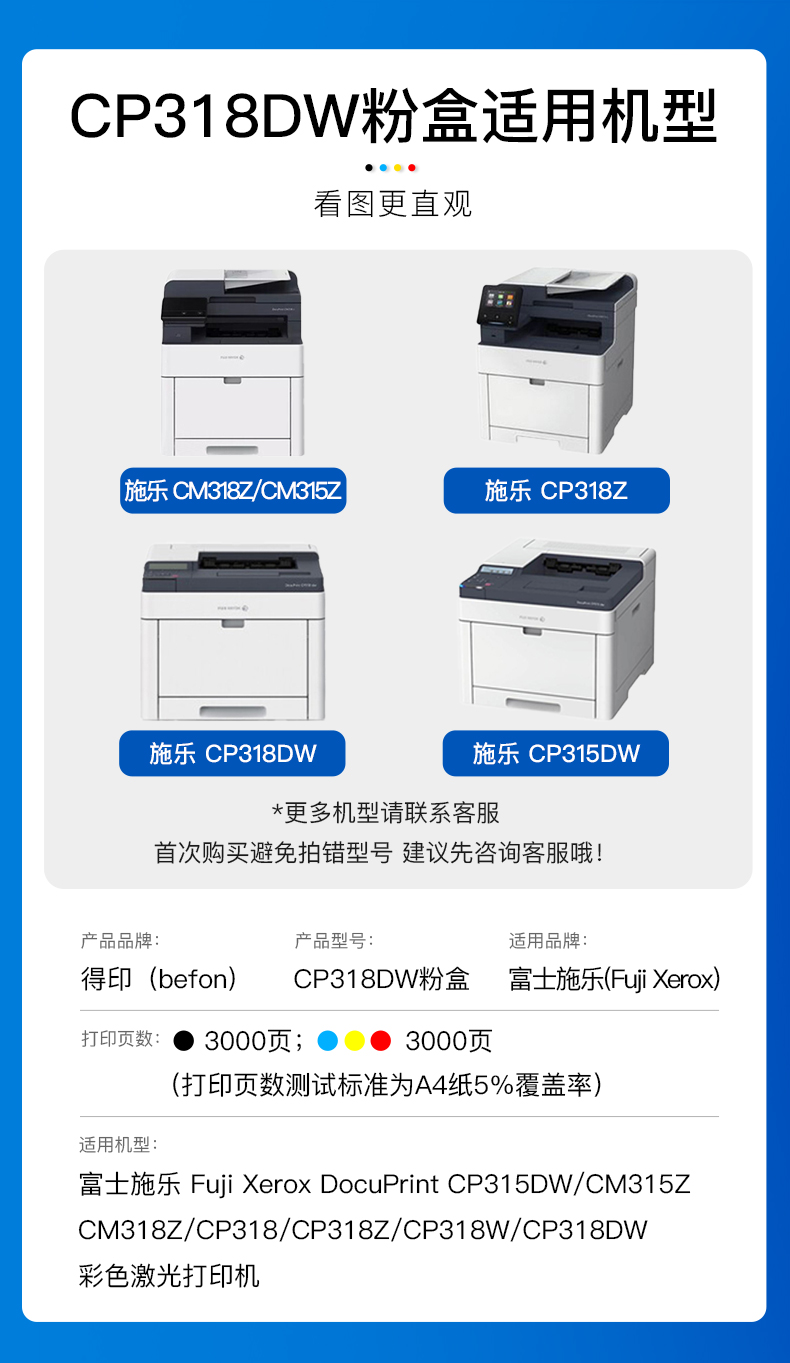 得印适用富士施乐318硒鼓 四色套装 CP315DW/CM315Z墨盒打印机硒鼓 粉盒 【厂家直发】四色粉盒套装