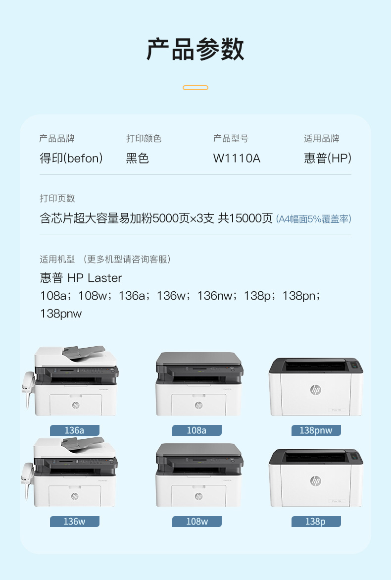 得印 110A硒鼓 W1110A易加粉超大容量带芯片三支装 适用惠普HP136w墨粉盒 【超大容量】含芯片-3支-15000页