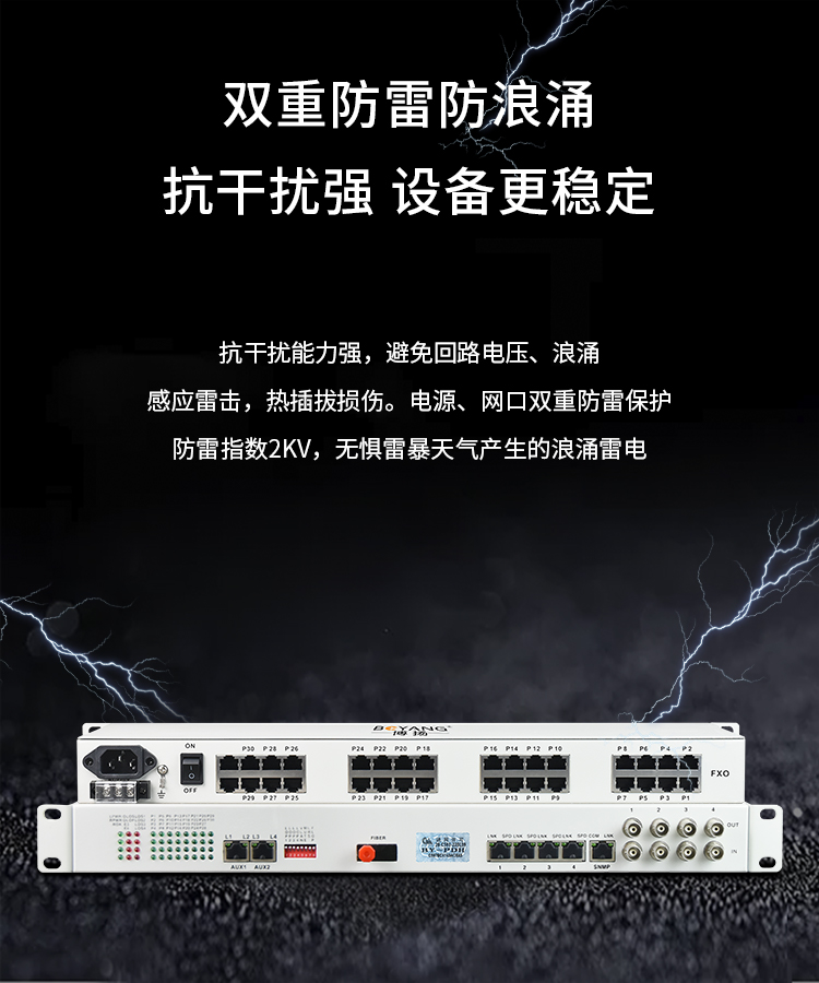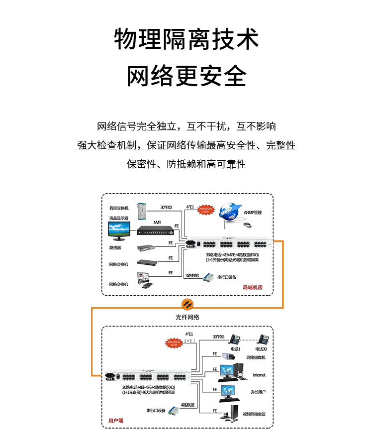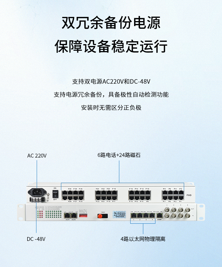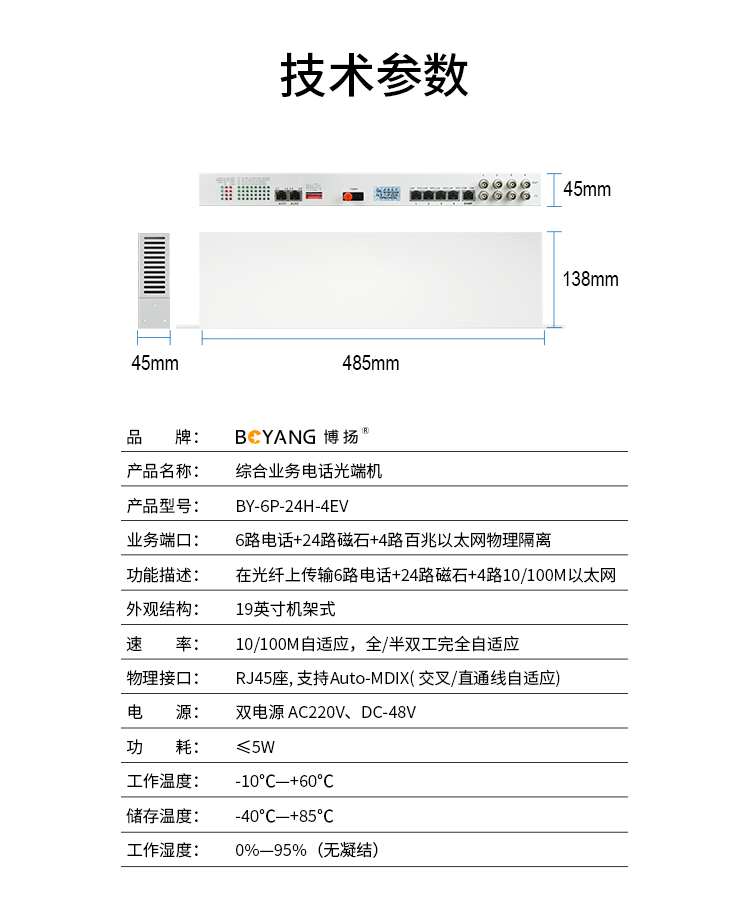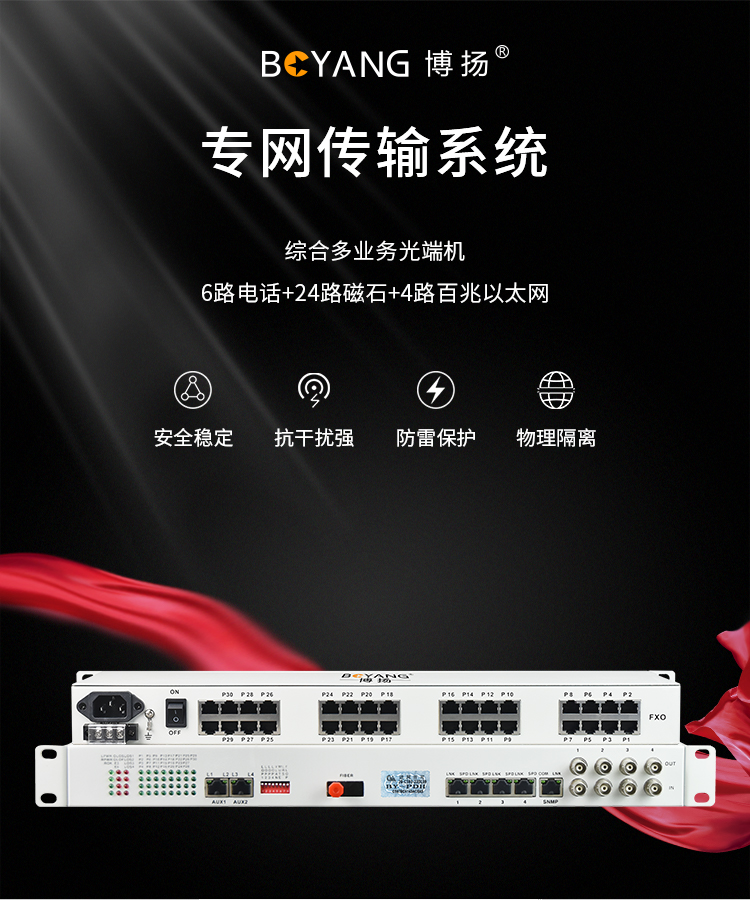 博扬 综合业务电话光端机 6路电话+24路磁石+4路百兆以太网物理隔离 单纤80km 机架式 1对价 BY-6P-24H-4EV 白色