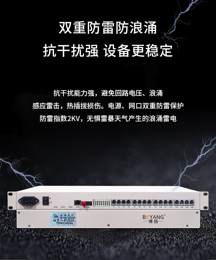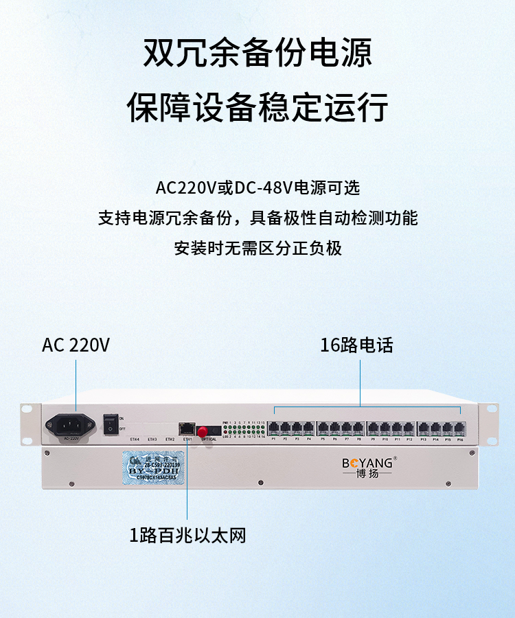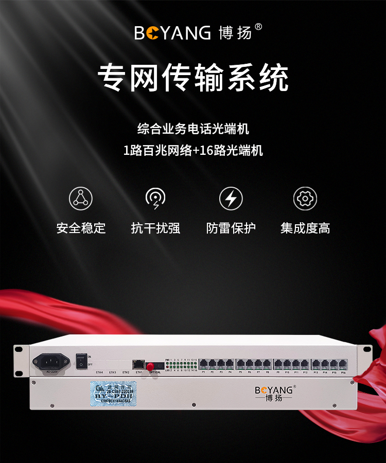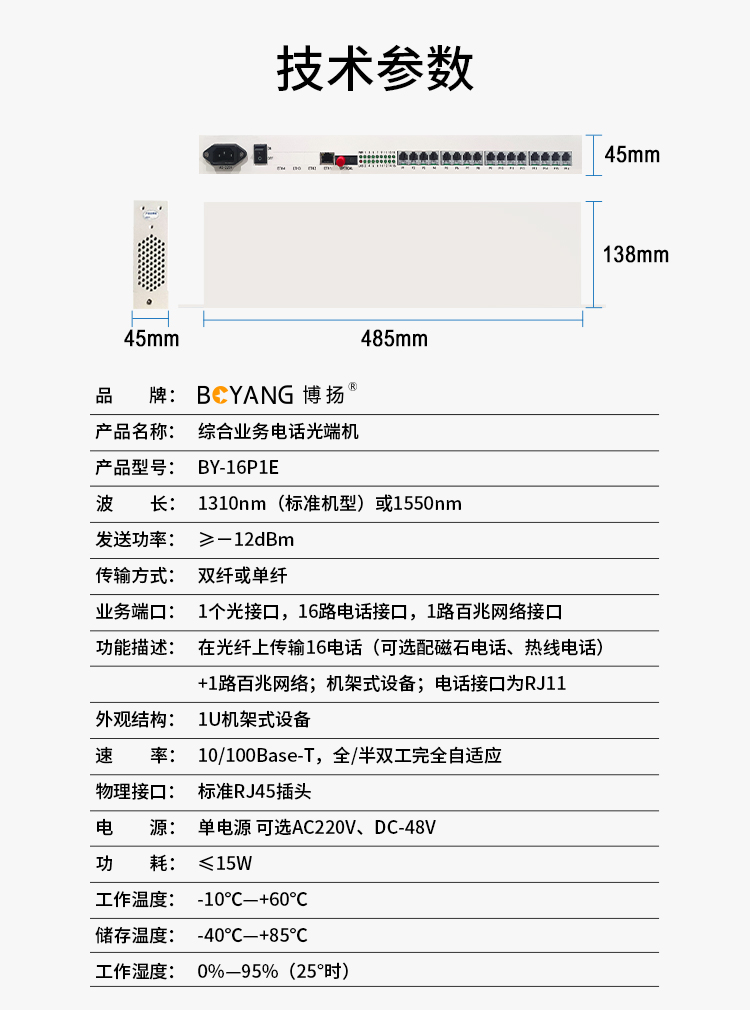 博扬(BOYANG)数字电话光端机16路电话语音+1路网络 对讲音频加以太网光纤传输FC接口 1对 BY-16P1E 白色