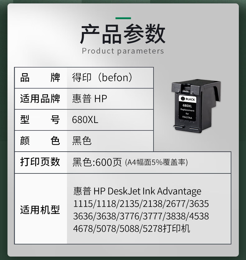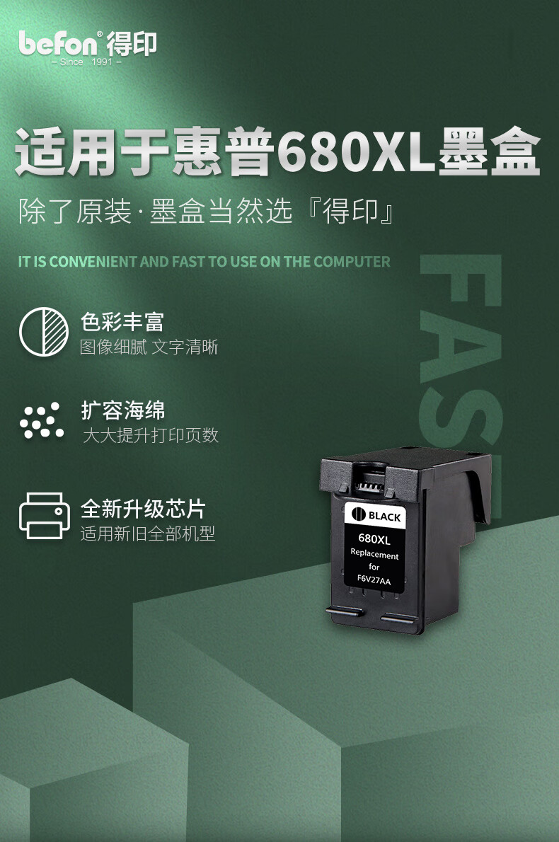 得印HP-680XL墨盒 黑色 大容量 适用惠普HP 打印机 【600页】黑色墨盒