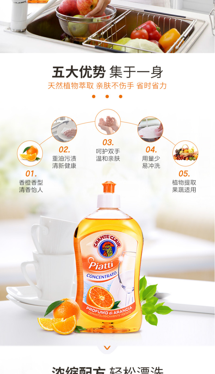 大公鸡管家 浓缩洗洁精(香橙味)500ml*2(计价单位:套) 橙色