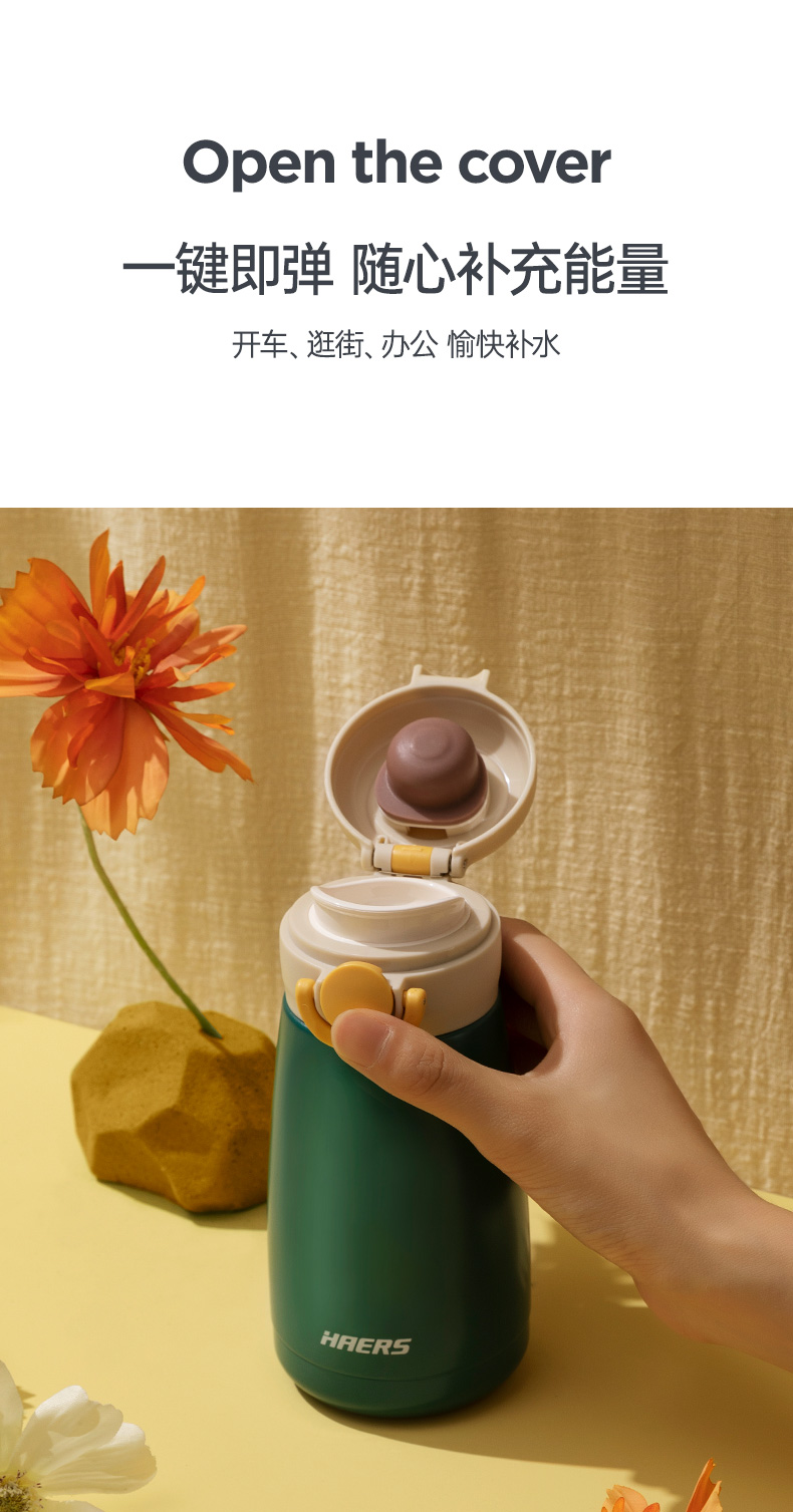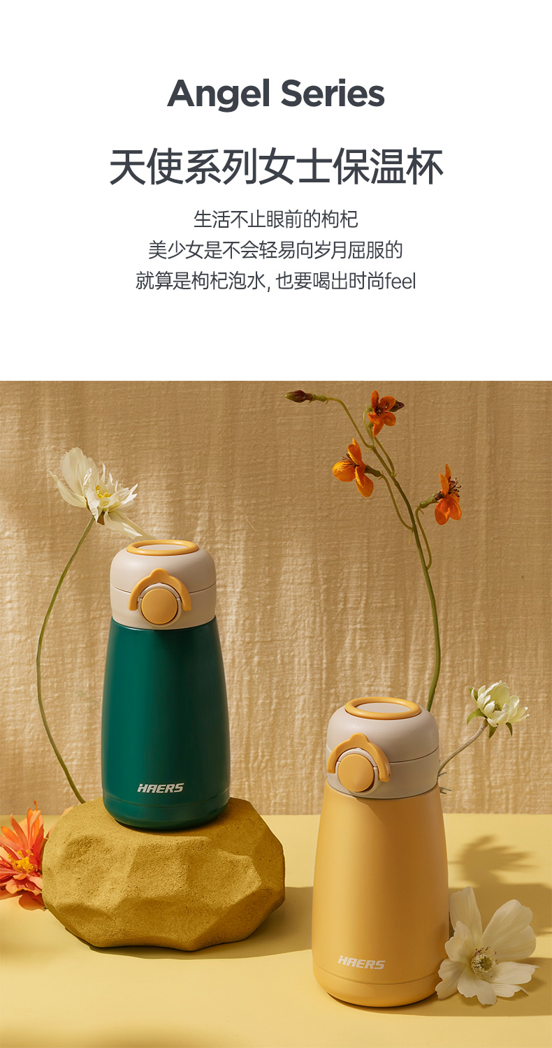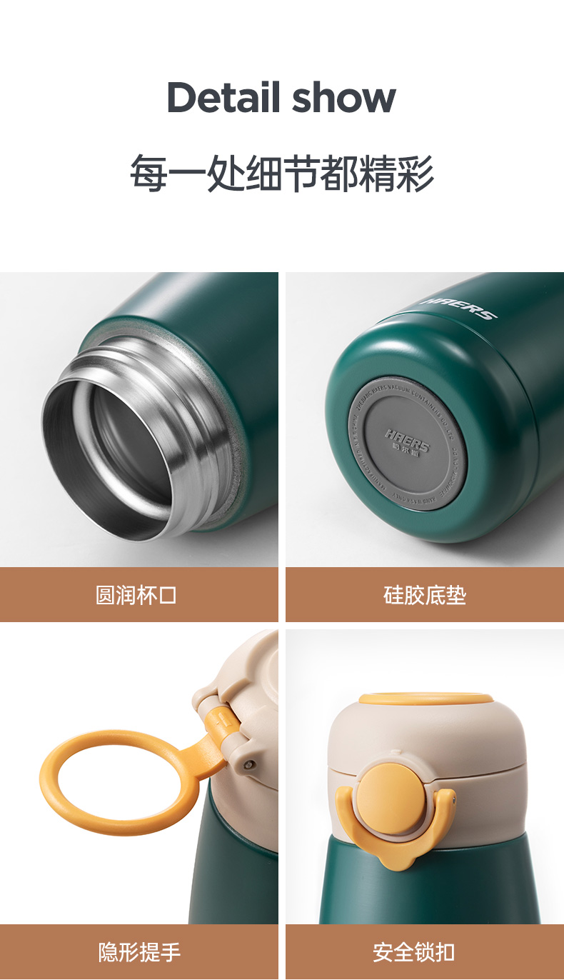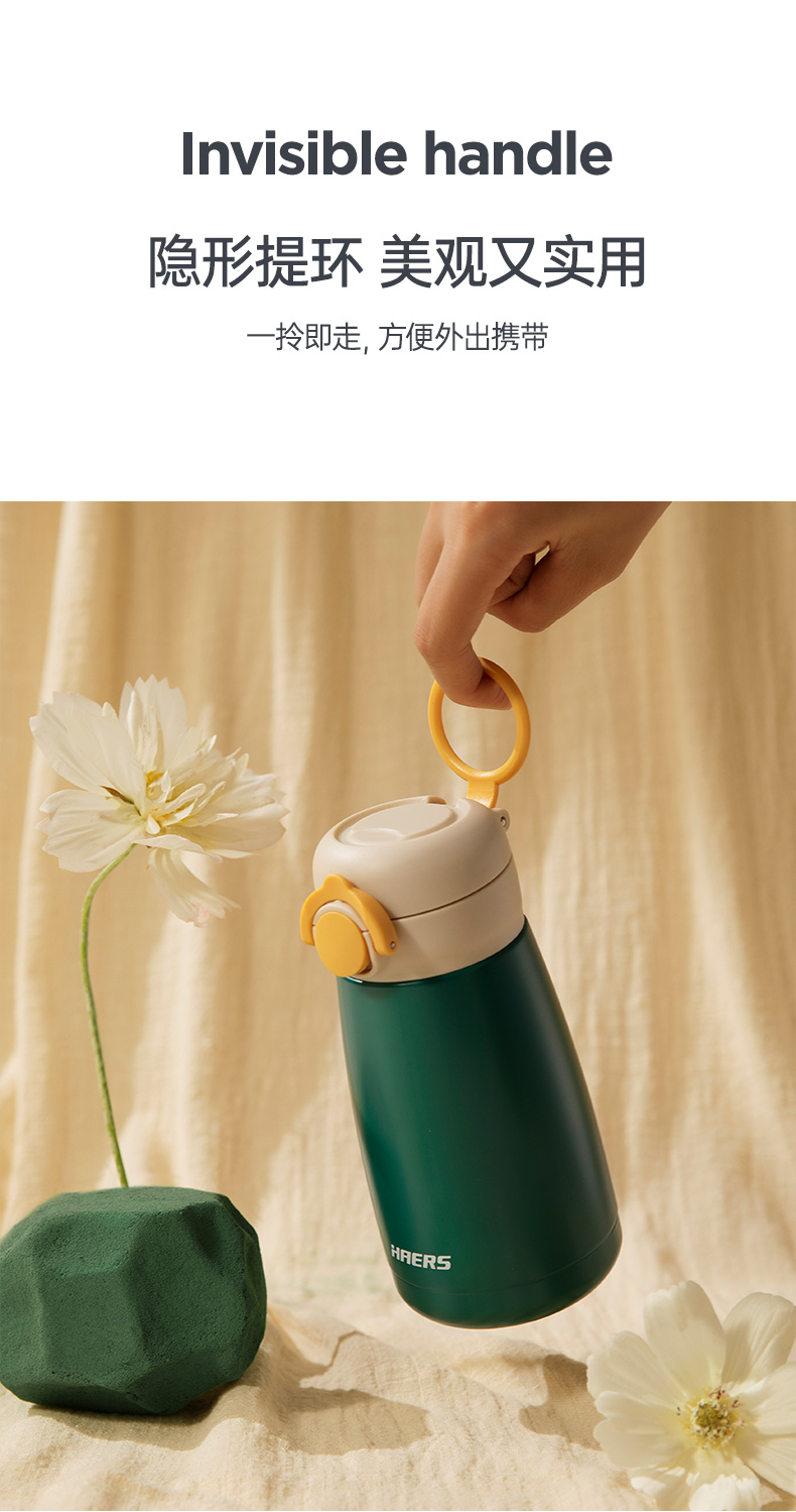 哈尔斯不锈钢保温杯女学生保温杯带提环便携水杯380ML HD-380-95(单位:个) 绿色
