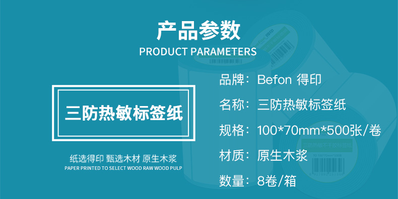 得印三防热敏不干胶标签纸 100*70*500枚 单排圆角8卷 【100mm×70mm×500枚】-8卷