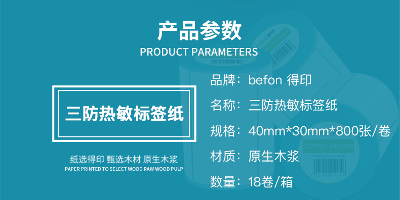 得印三防热敏不干胶标签纸 40*30*800枚 单排圆角18卷 【40mm×30mm×800枚】-18卷