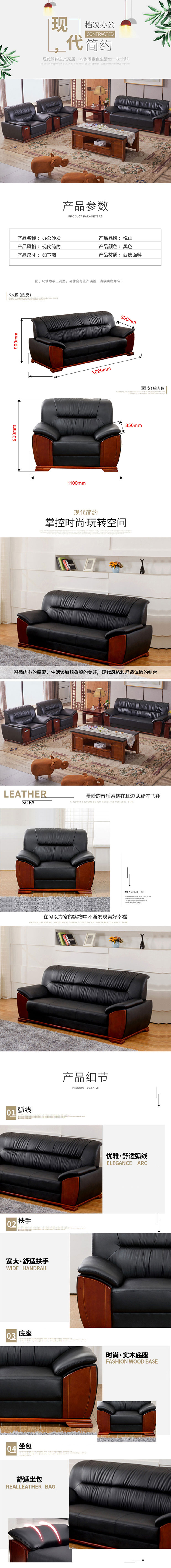 悦山 办公沙发组合西皮材质 1+1+3*1套 黑色
