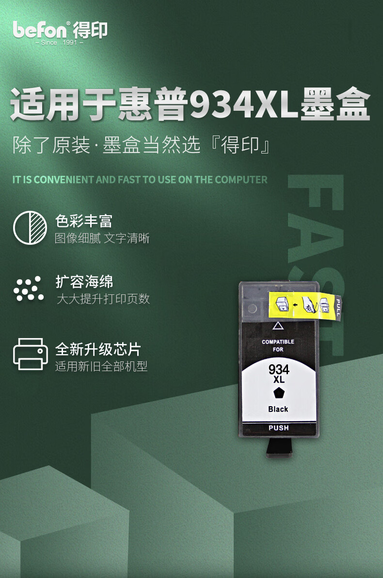 得印HP-934墨盒 黑色 大容量 C2P23AA 适用惠普HP 打印机 【1000页】934黑色墨盒