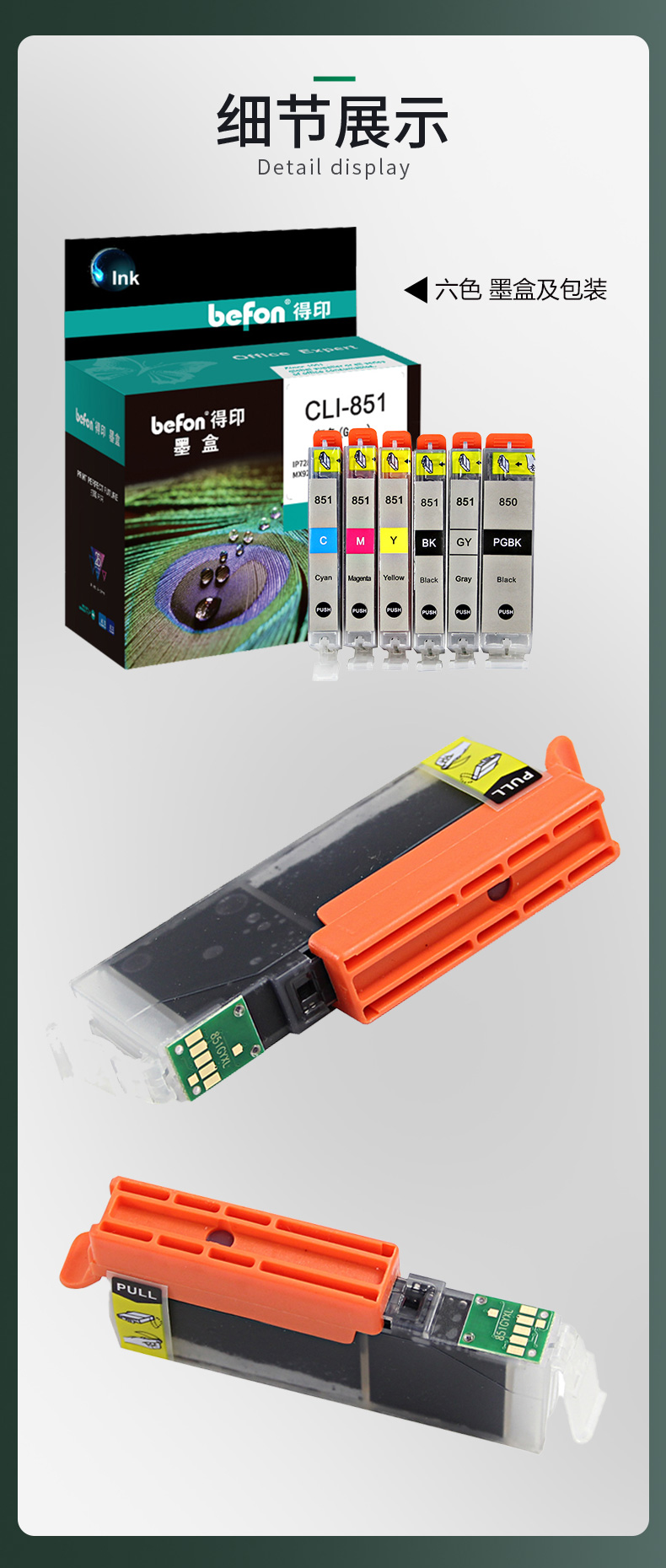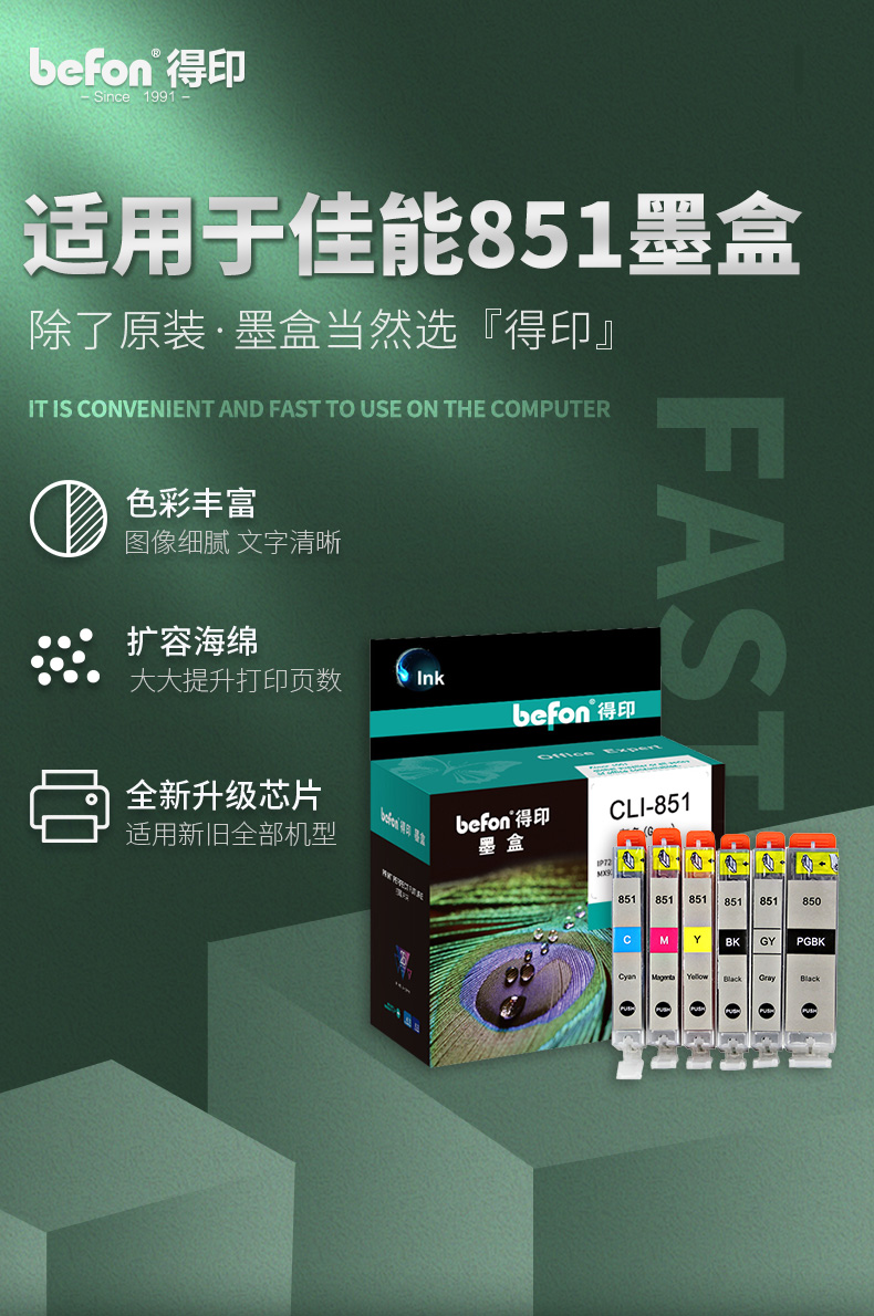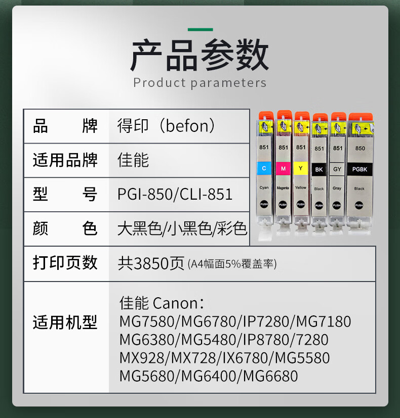 得印PGI-850/CLI-851大容量墨盒套装 适用佳能MG7580 IX6780打印机 【厂家直发】六色墨盒套装