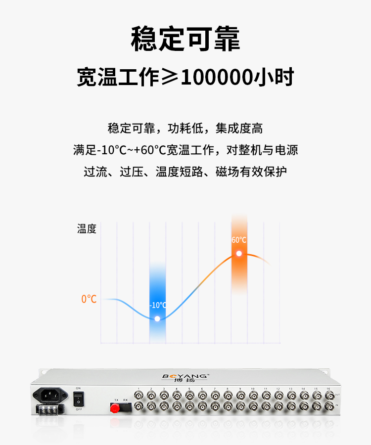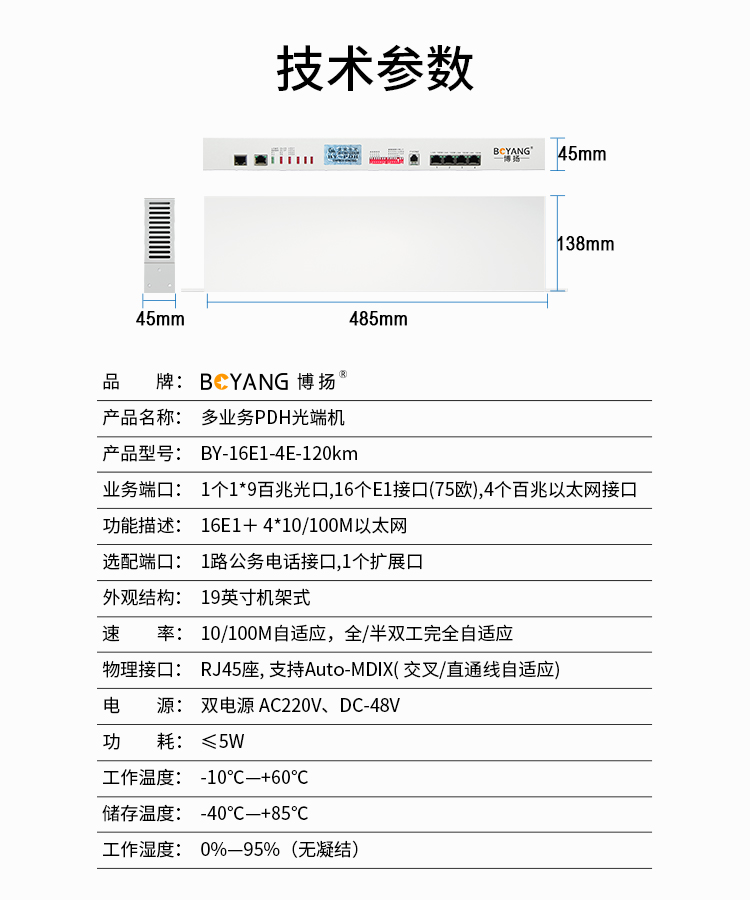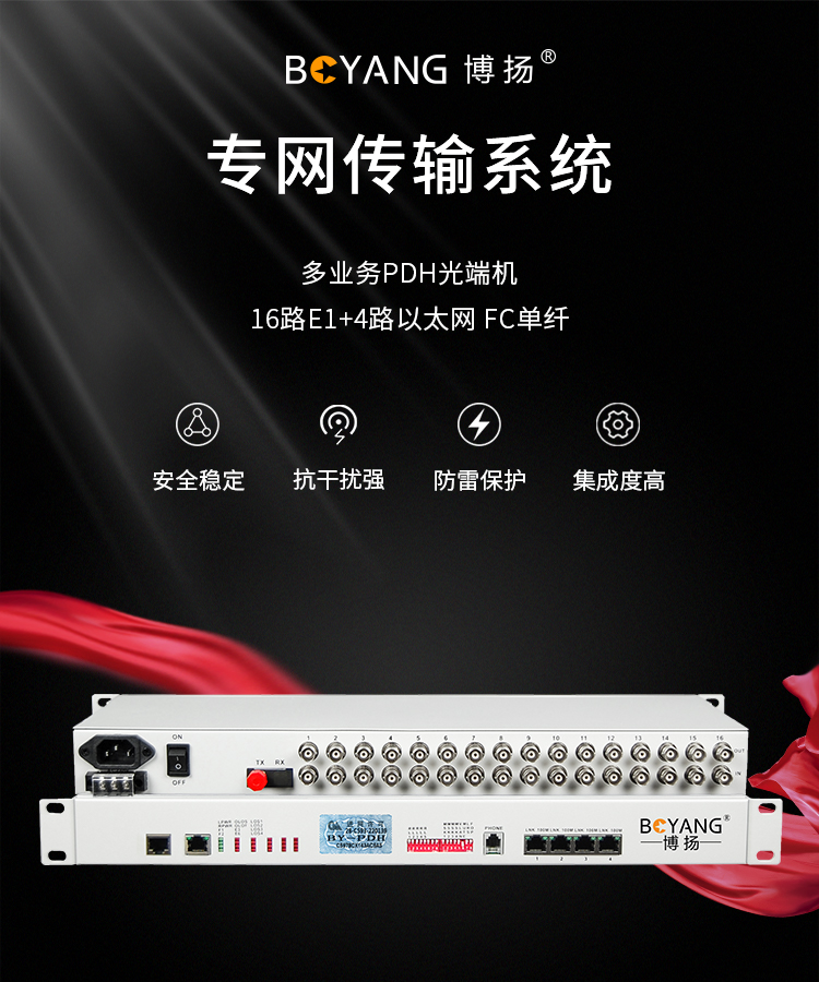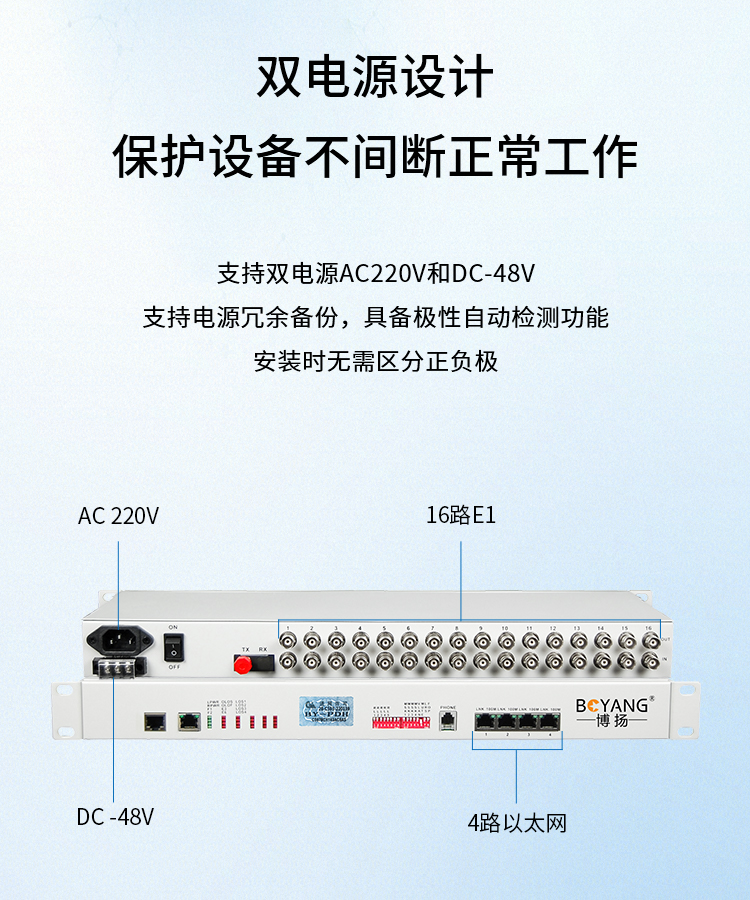 博扬 PDH光端机 16路E1+4路百兆以太网(共享)单纤120km 机架式双电源 1对价 BY-16E1-4E-120km(对) 白色