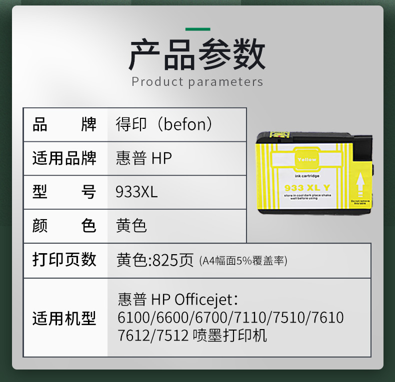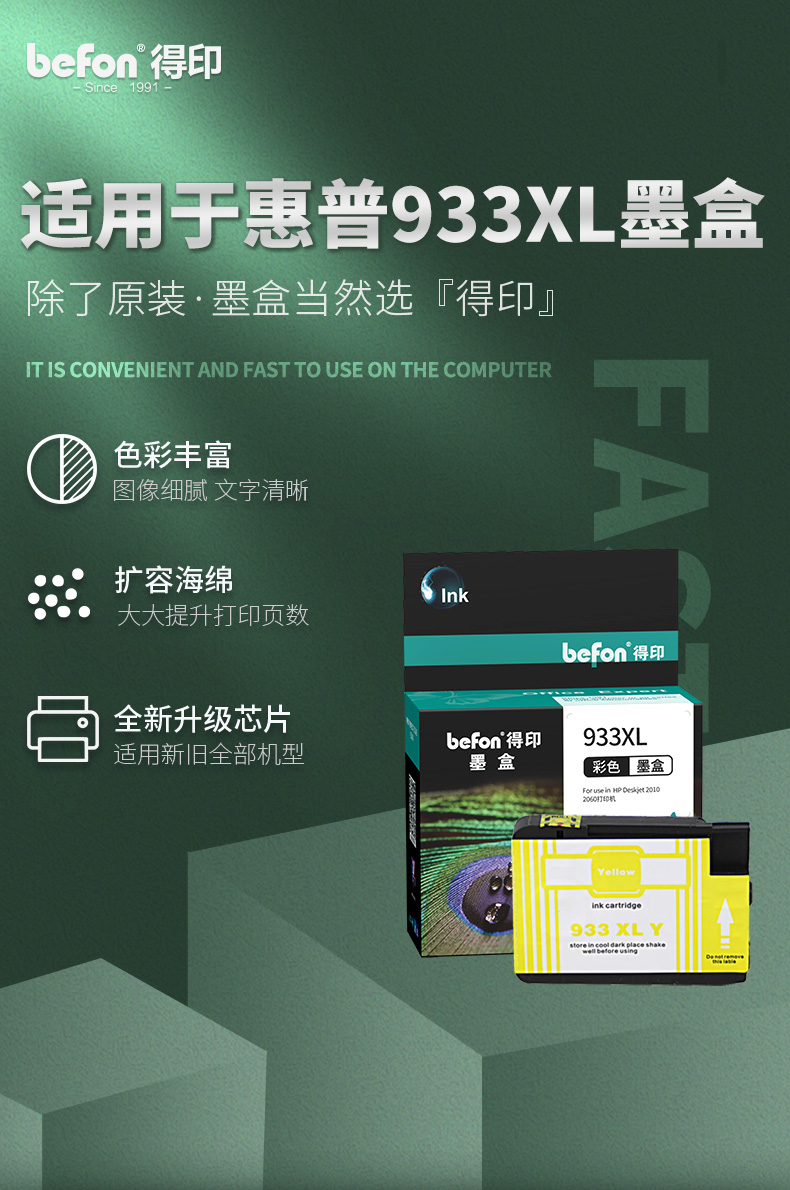 得印(befon) 933XL 825页(A4,5%) 墨盒 黄色(单位:支)
