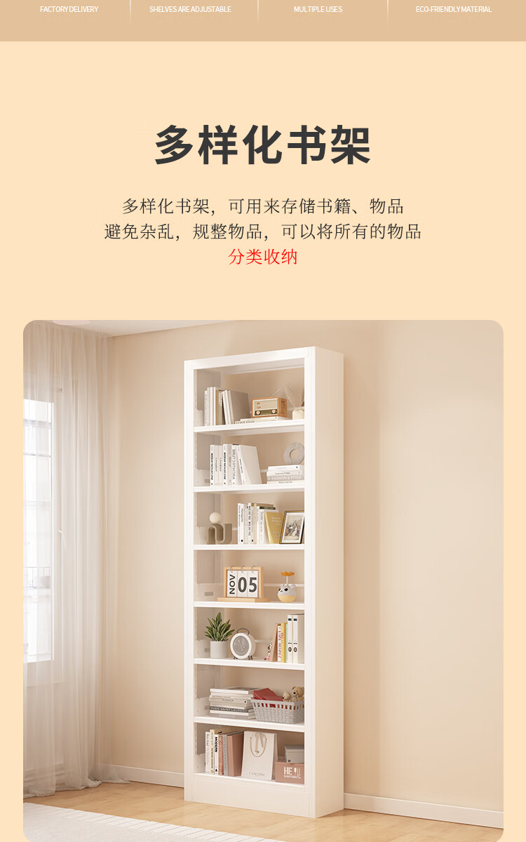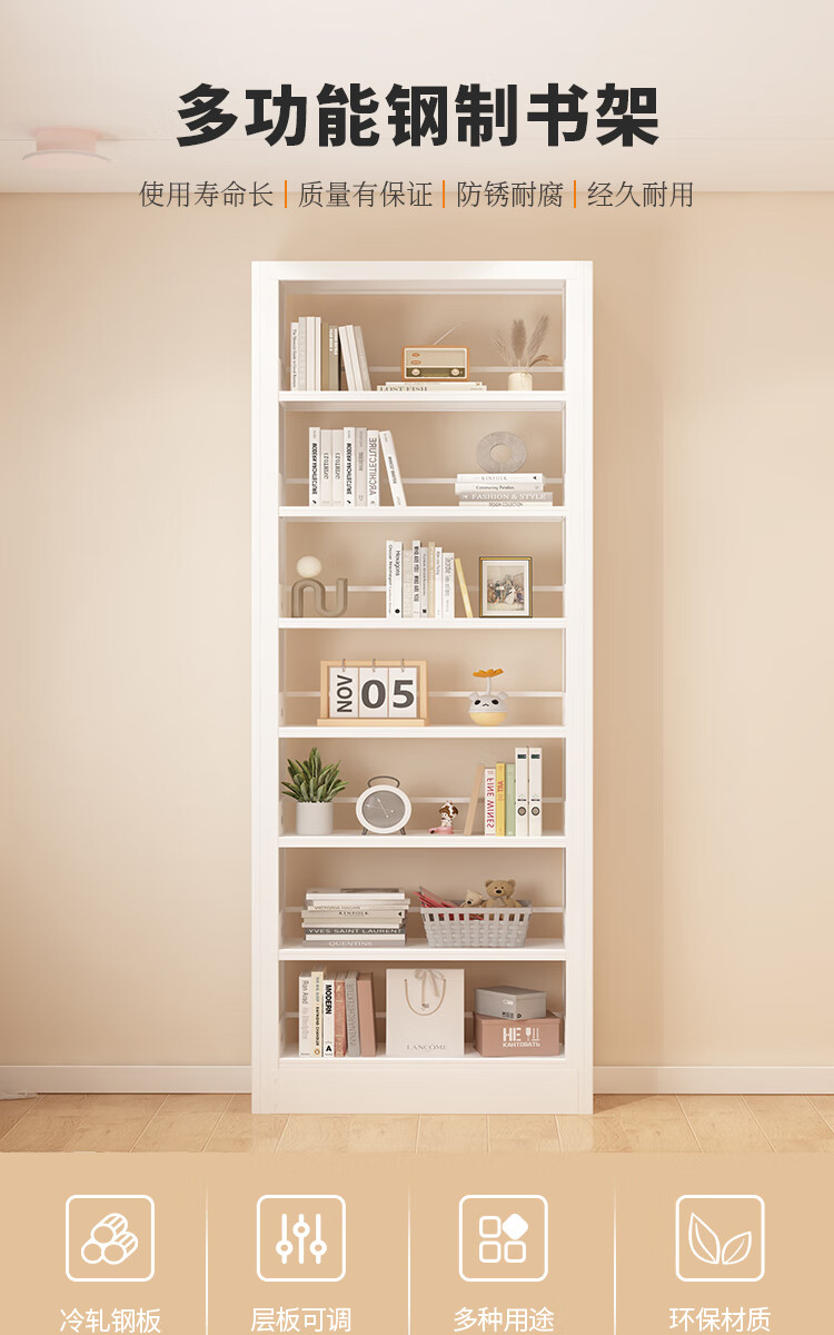 维仕蓝 图书馆落地多层展示架宝宝铁艺书架主架90*30*240七层单位:个 木色