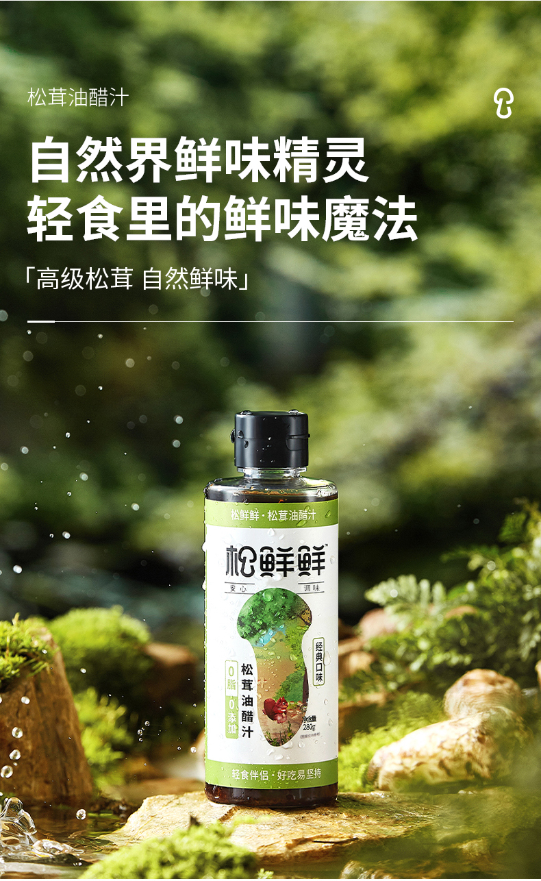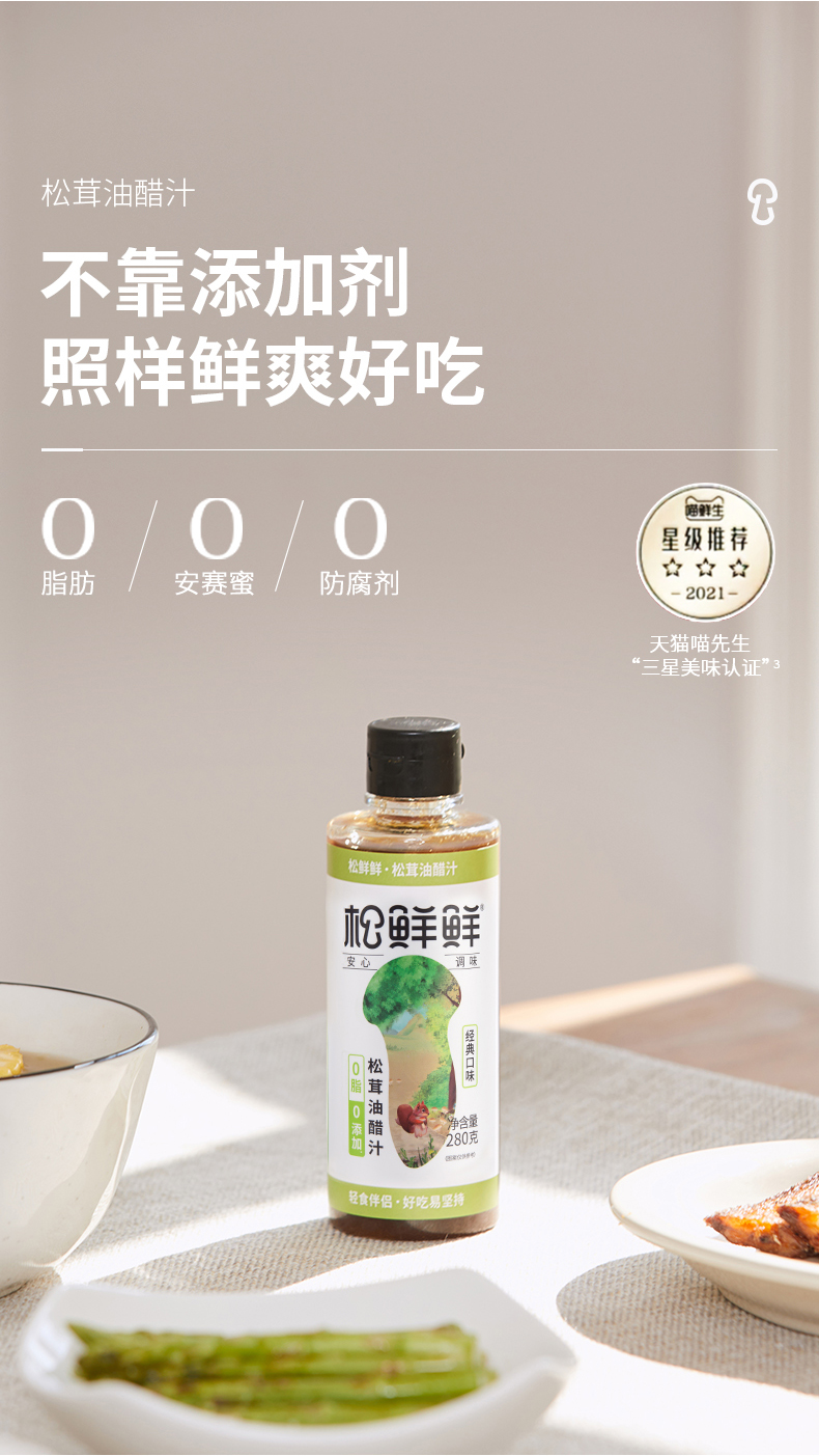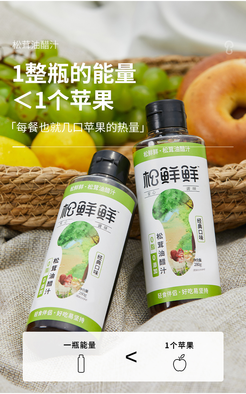 松鲜鲜松茸油醋汁0脂肪蔬菜水果沙拉健身餐沙拉汁家用低脂酱料280g*3瓶 绿色