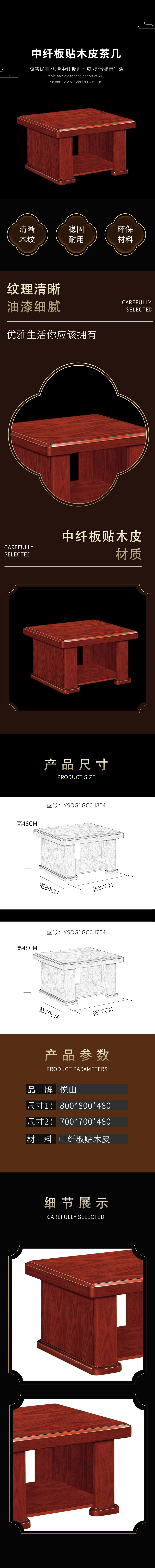 悦山 办公茶几边几 胡桃木色 700*700*480*1张
