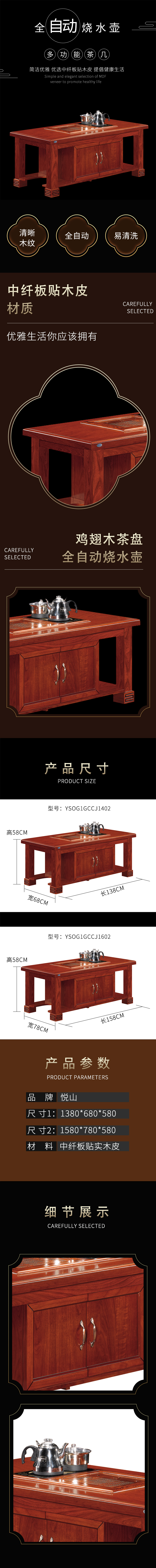 悦山 多功能茶几功夫茶桌 胡桃木色 1380*680*580*1张