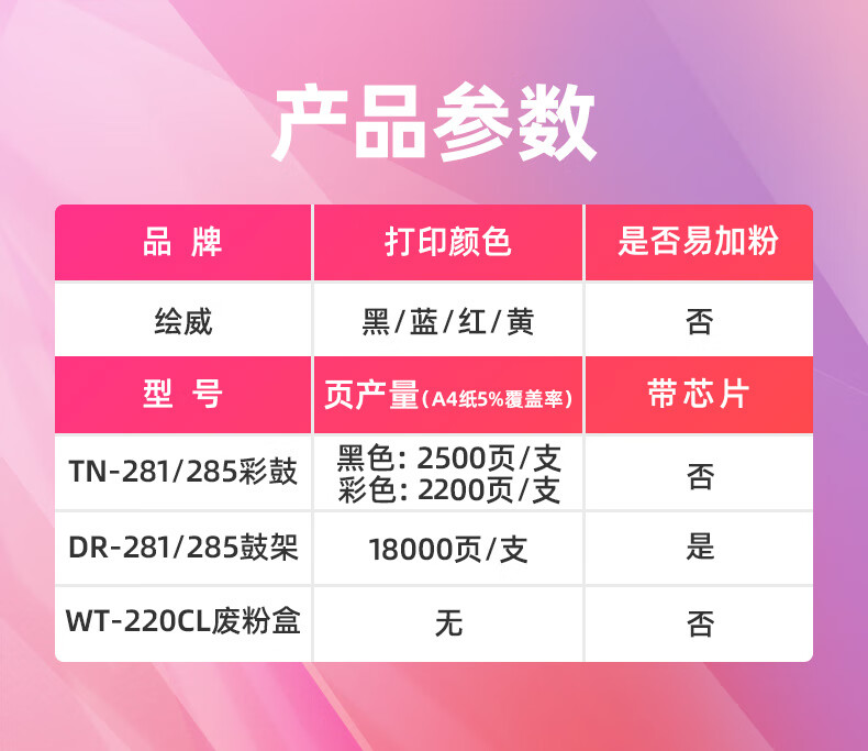 绘威 TN-281/TN-285 BK黑色粉盒打印量2500页 适用兄弟HL-3140 HL3150CDN HL3170CDW 硒鼓 1.00 只/个 (计价单位:个) 黑色