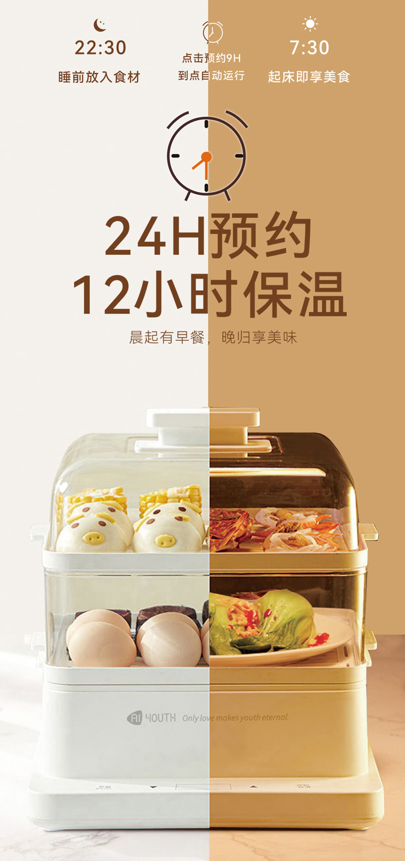 艾青春(AIYOUTH)智能款电蒸锅(22L)KH-Z06(台) 白色