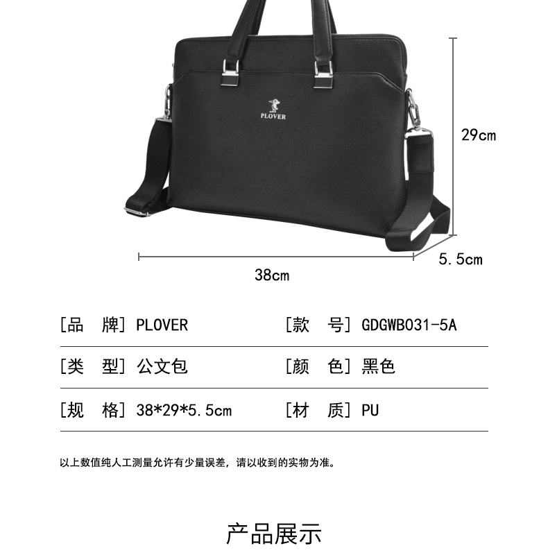 PLOVER香港啄木鸟PU公文包 GDGWB031-5A(单位:个) 黑色