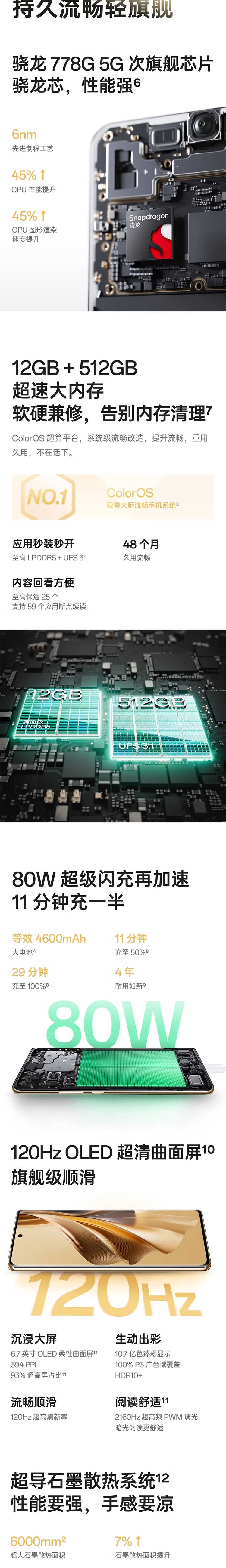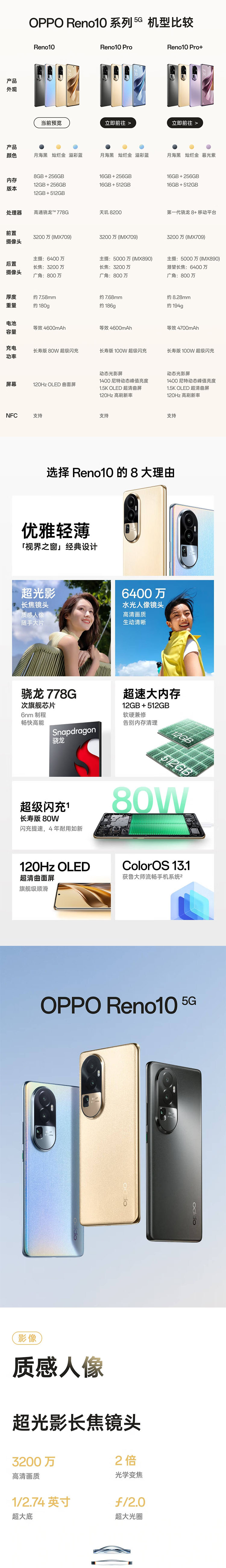 OPPO Reno10 12GB+256GB G手机 溢彩蓝