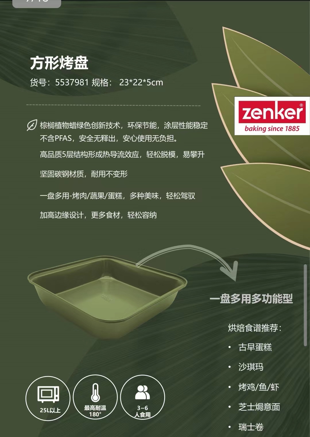 法克曼/Fackelmann 德国Zenker绿野仙棕系列方形烤盘(单位:个) 绿色