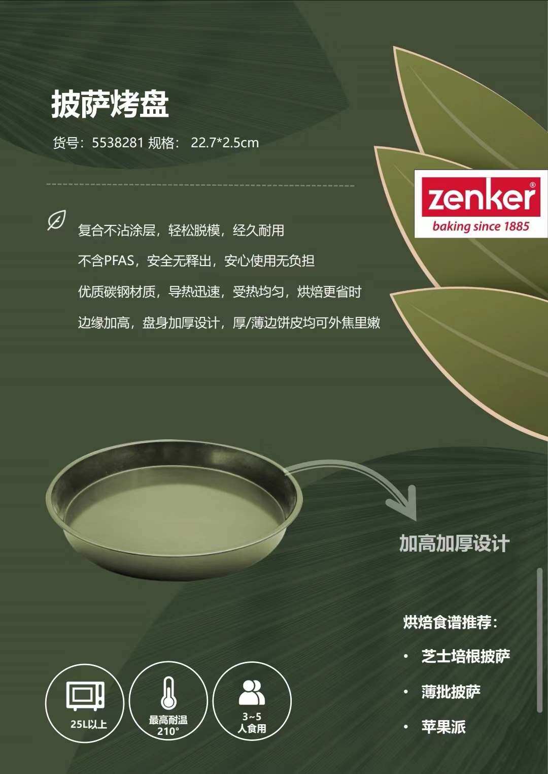 德国Zenker绿野仙棕系列披萨烤盘(单位:个) 绿色
