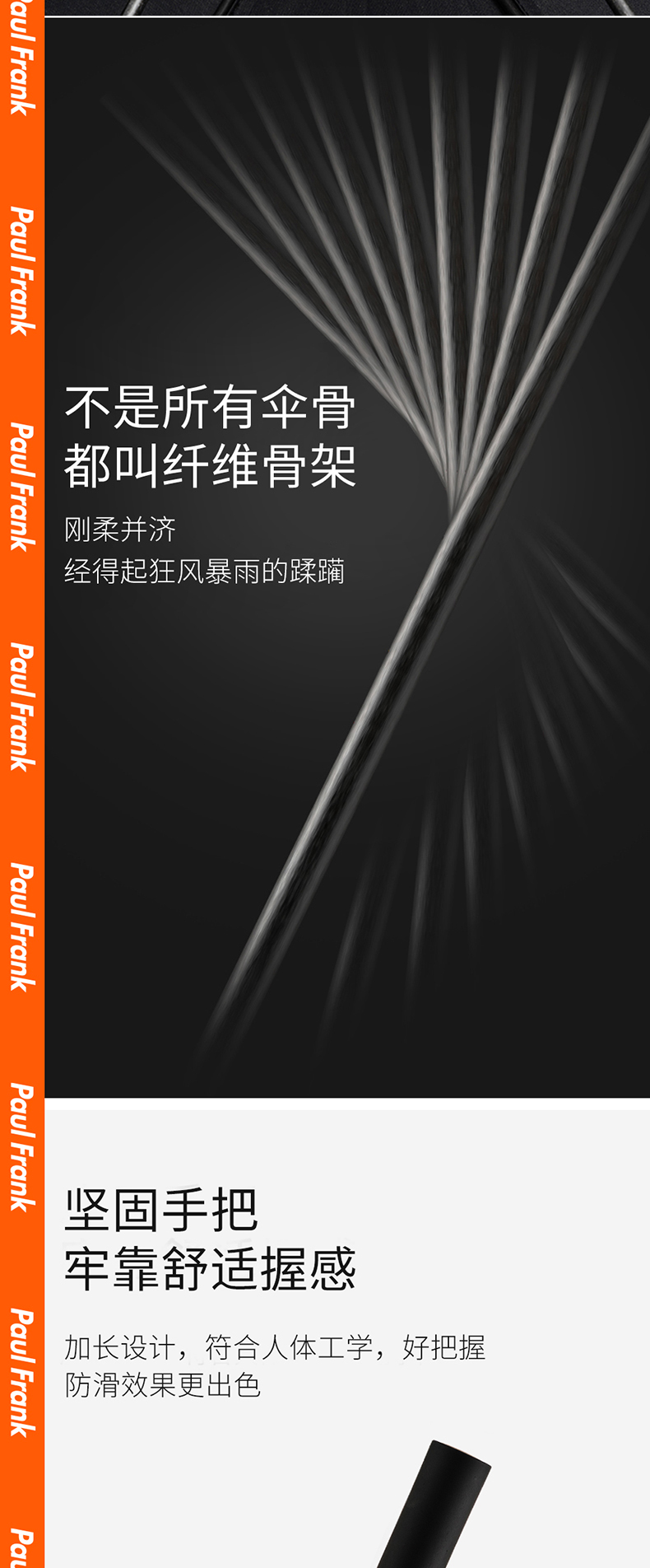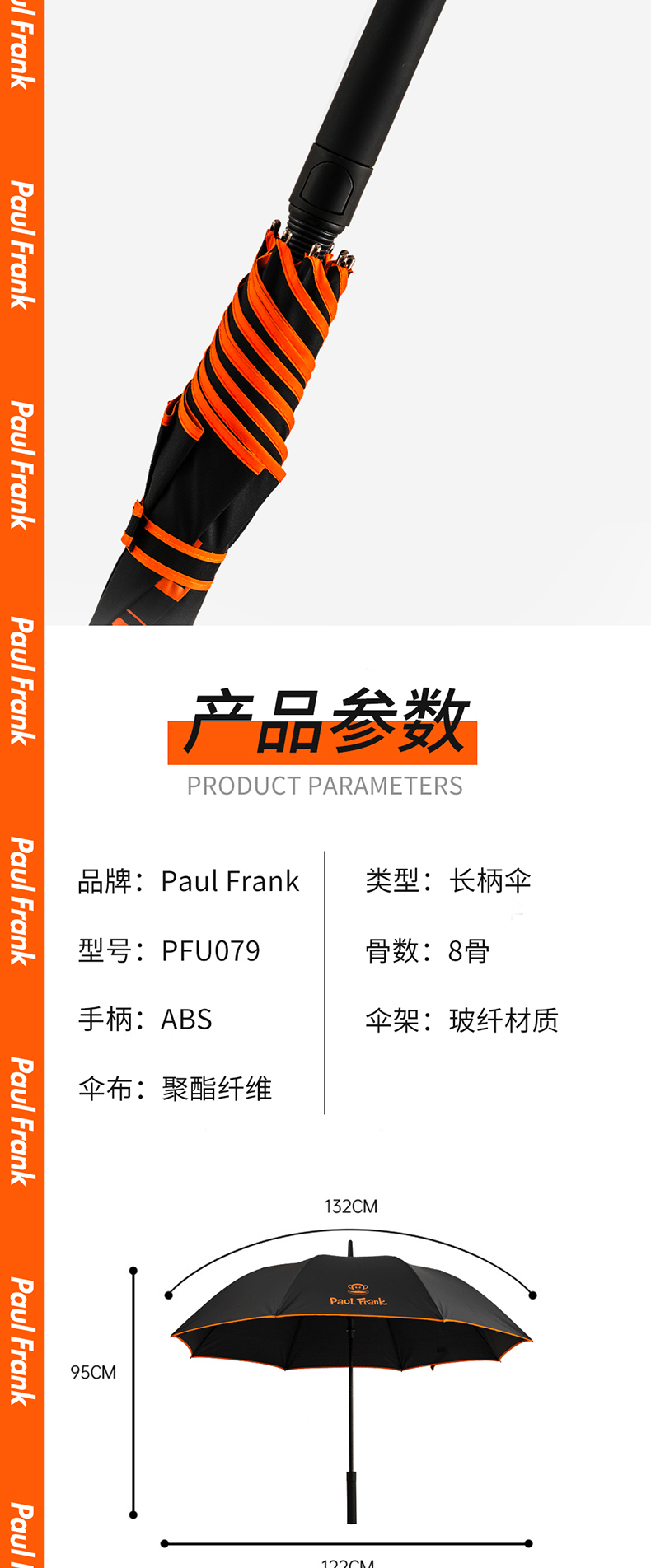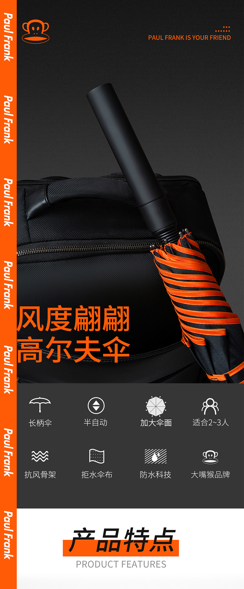 大嘴猴(Paul Frank) PFU079 95cm*8K 直柄伞 黑色(单位:把)