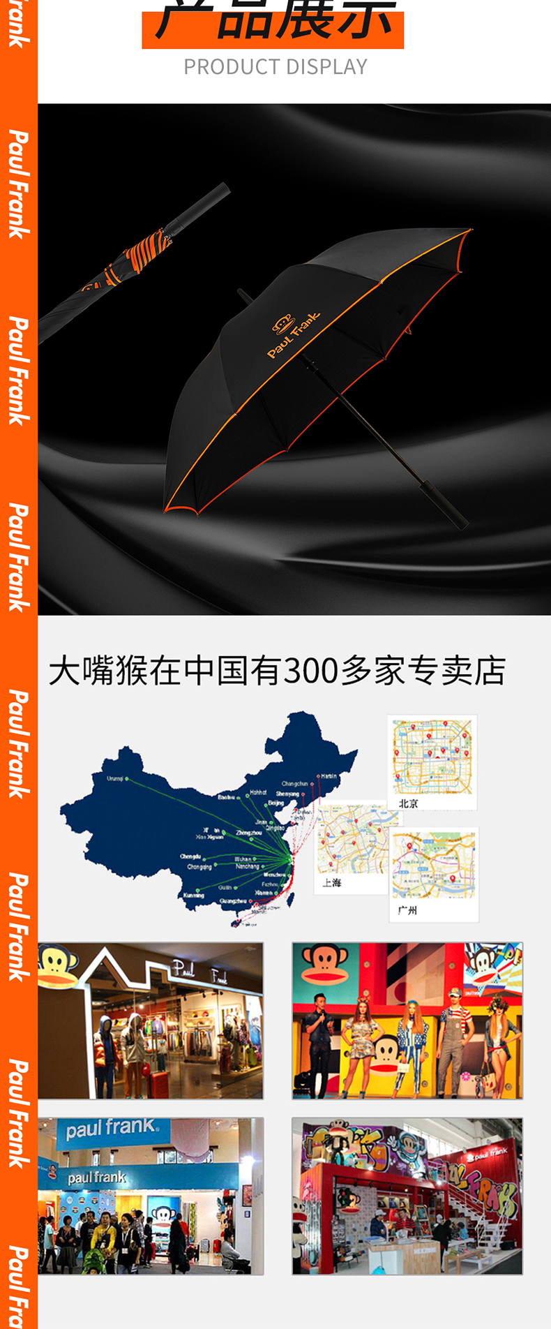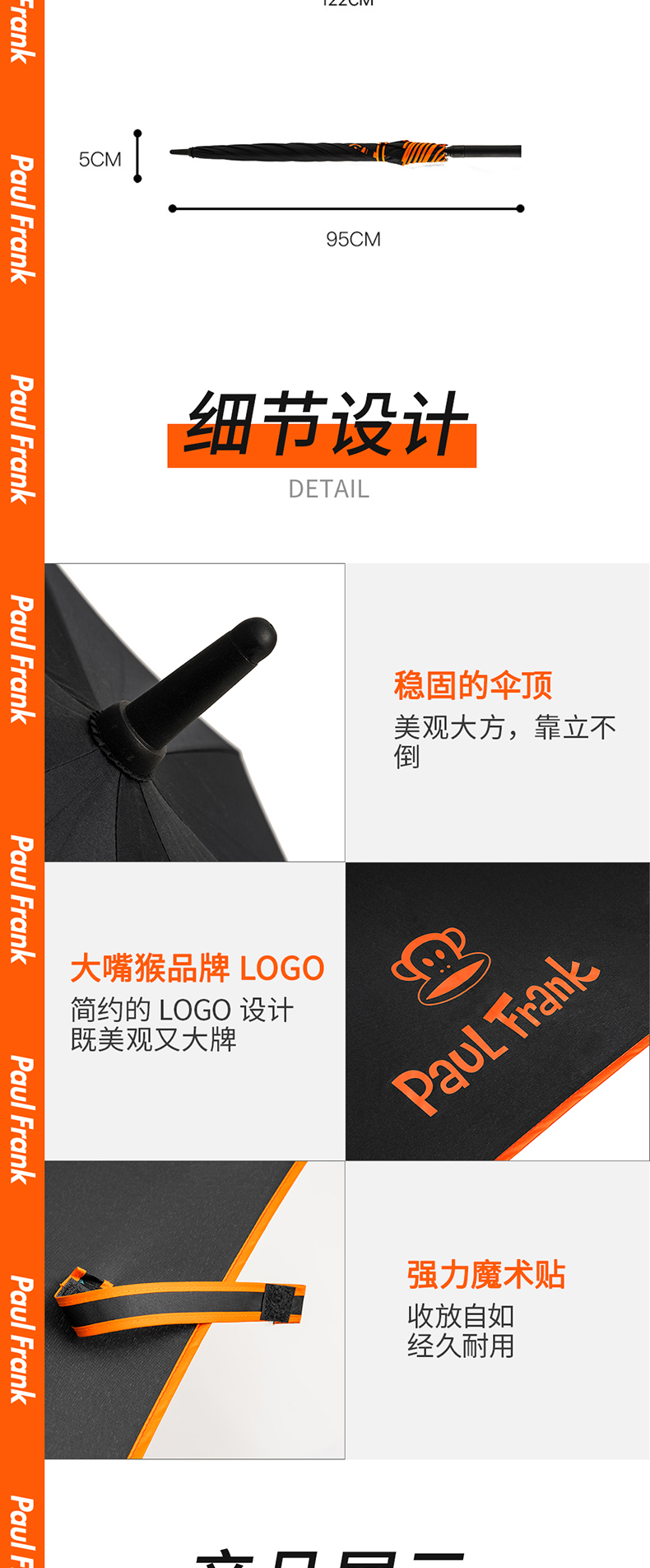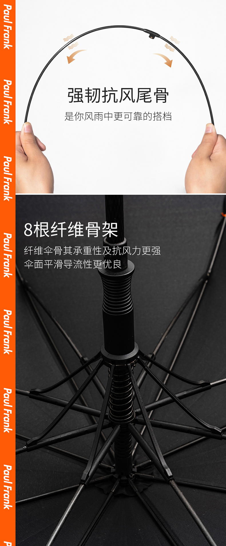 大嘴猴(Paul Frank) PFU079 95cm*8K 直柄伞 黑色(单位:把)