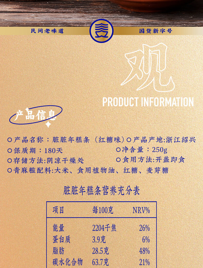 三关六码头开花红糖脏脏年糕250g*3(单位:组) 蓝色
