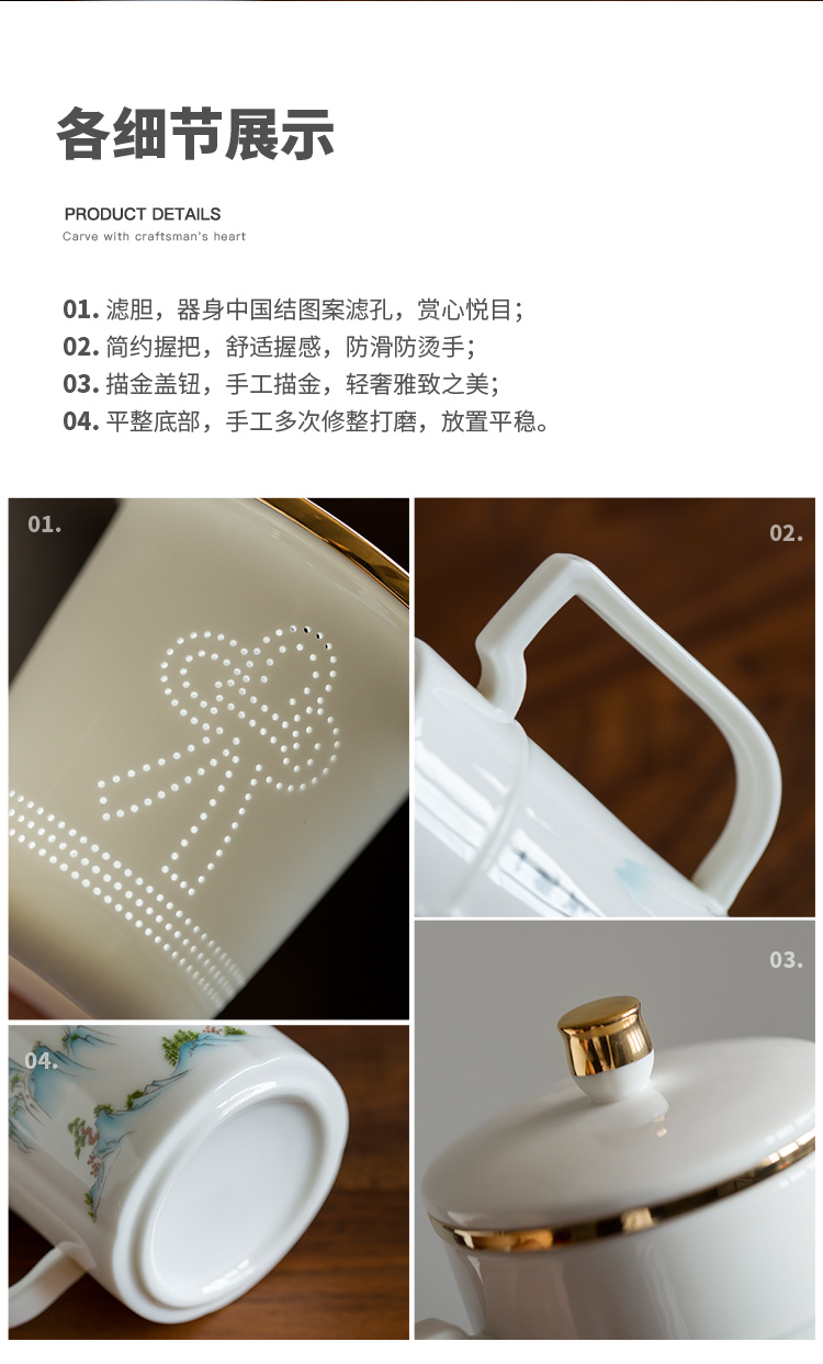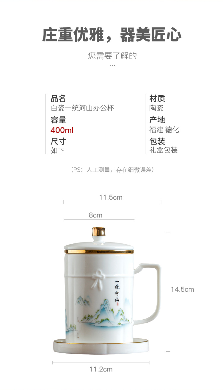 德诺爱利莱德 一统山河办公杯 泡茶杯 400ml 16套/箱 (单位:套) 白色