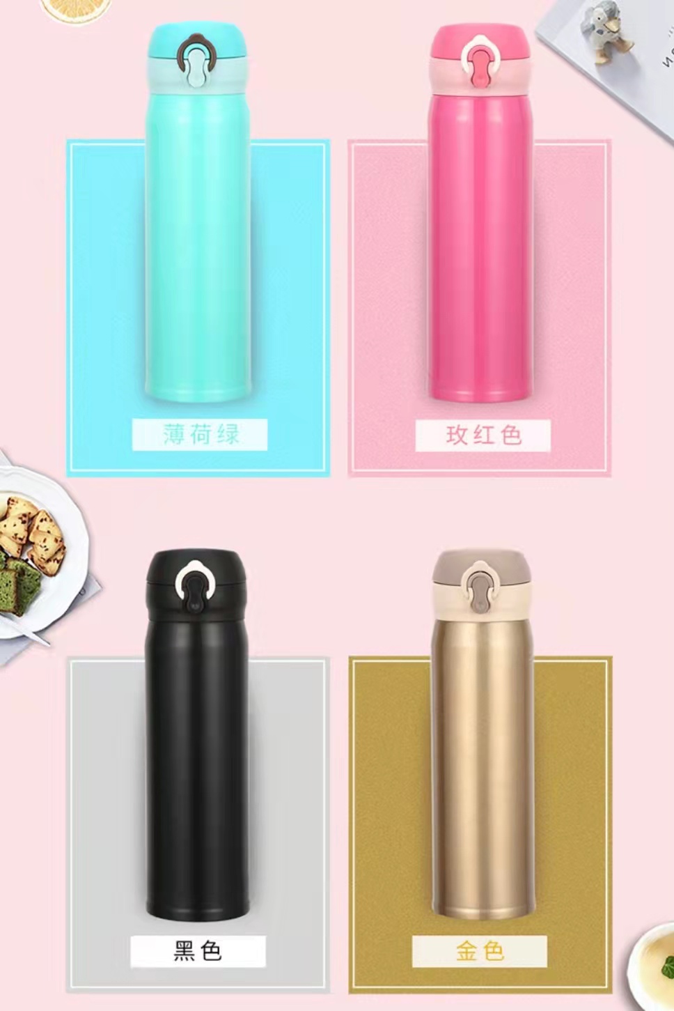 德诺 锦鲤暖心弹跳杯 304不锈钢 500ml 50个/箱(单位:个) 随机