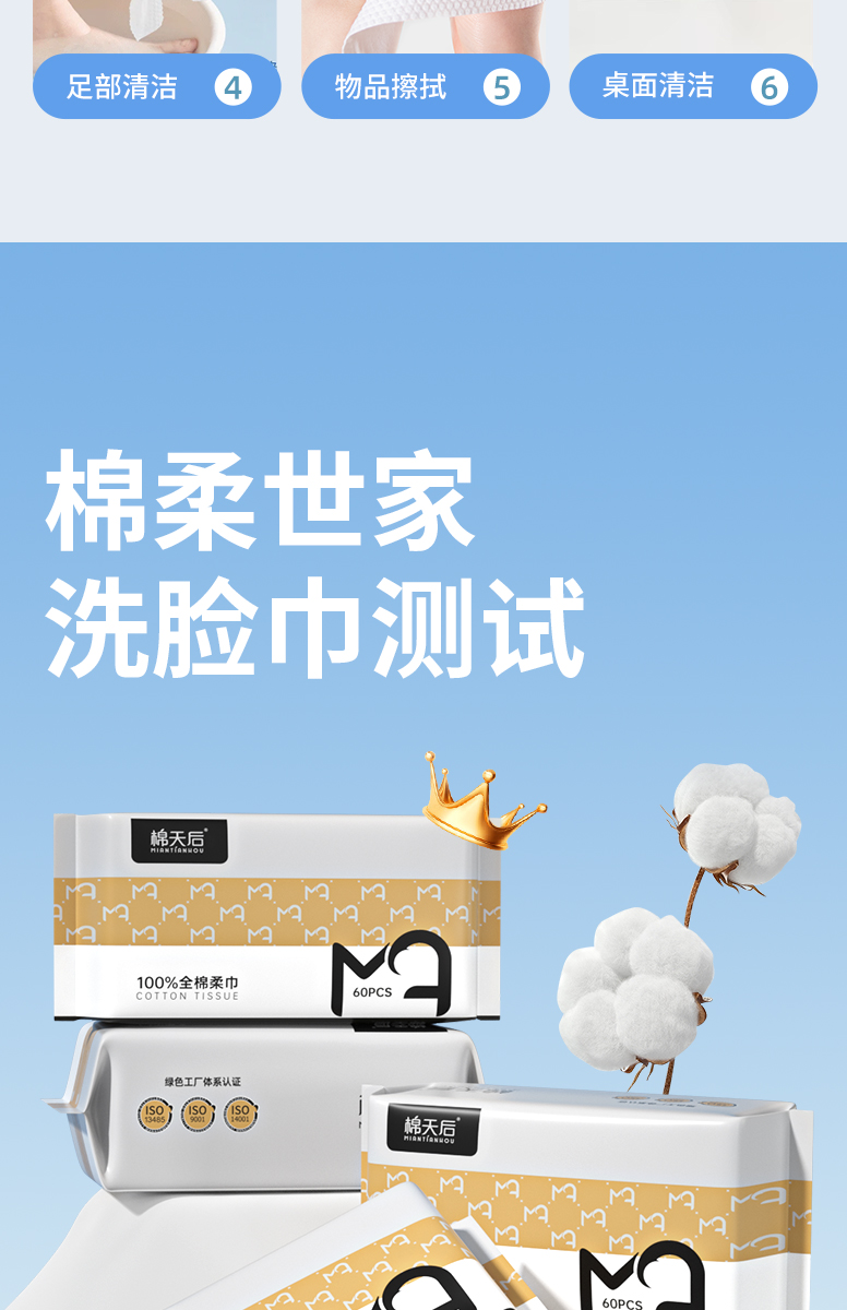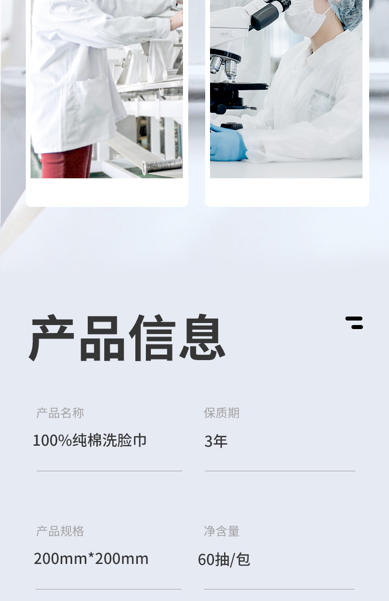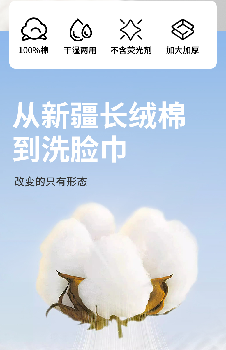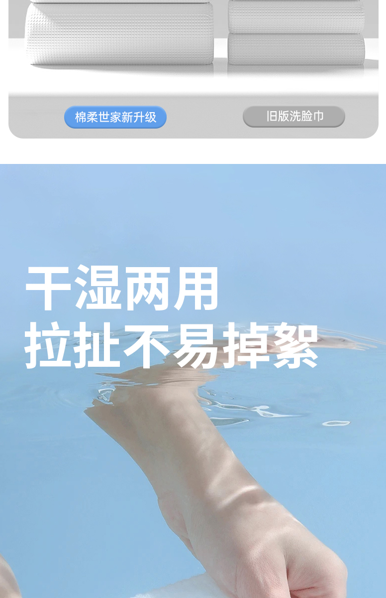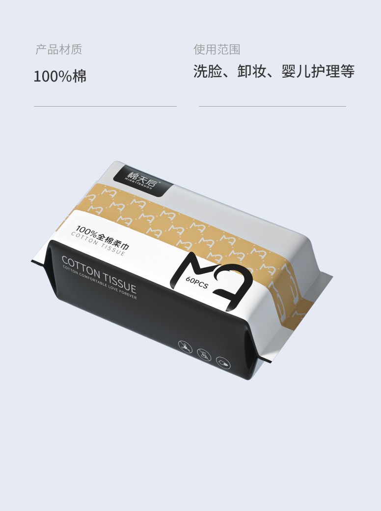 棉柔世家纯棉洗脸巾一次性擦脸巾100%全棉洁面巾干湿两用棉柔巾20*20/60抽*3包 白色
