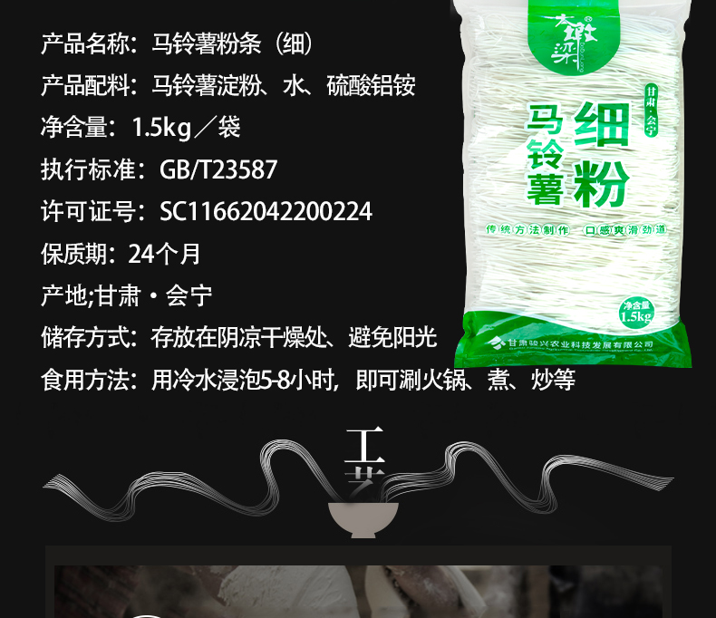 大墩梁 1.5kg宽粉 马铃薯粉条 白色(单位:袋)